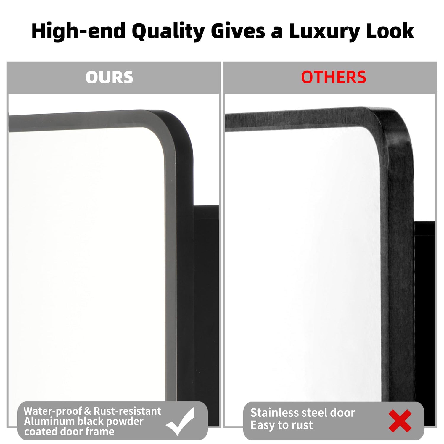 - High Quality Aluminum: This rectangle mirrored medicine cabinet made of high quality aluminum and iron with powder coated to ensure durability, perfectly blend in various decoration styles. Anodized aluminum construction can resitant rust and chip.