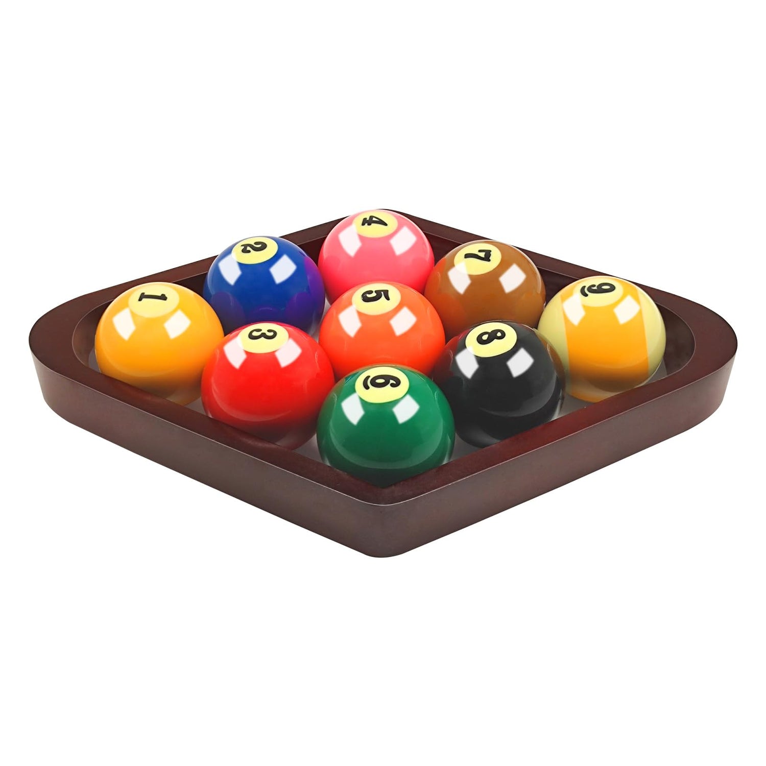 - Regulation Size: The triangle rack measures 13" x 11.5" x 1.25", while the diamond rack dimensions are 12" x 8.25" x 1.25". These racks are designed to hold regulation-size 2-1/4" pool balls, providing you with a precise and consistent setup for your games.