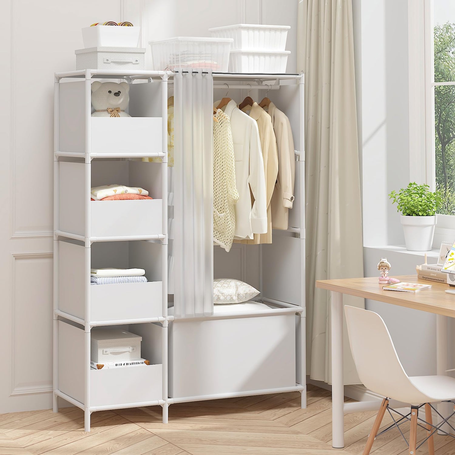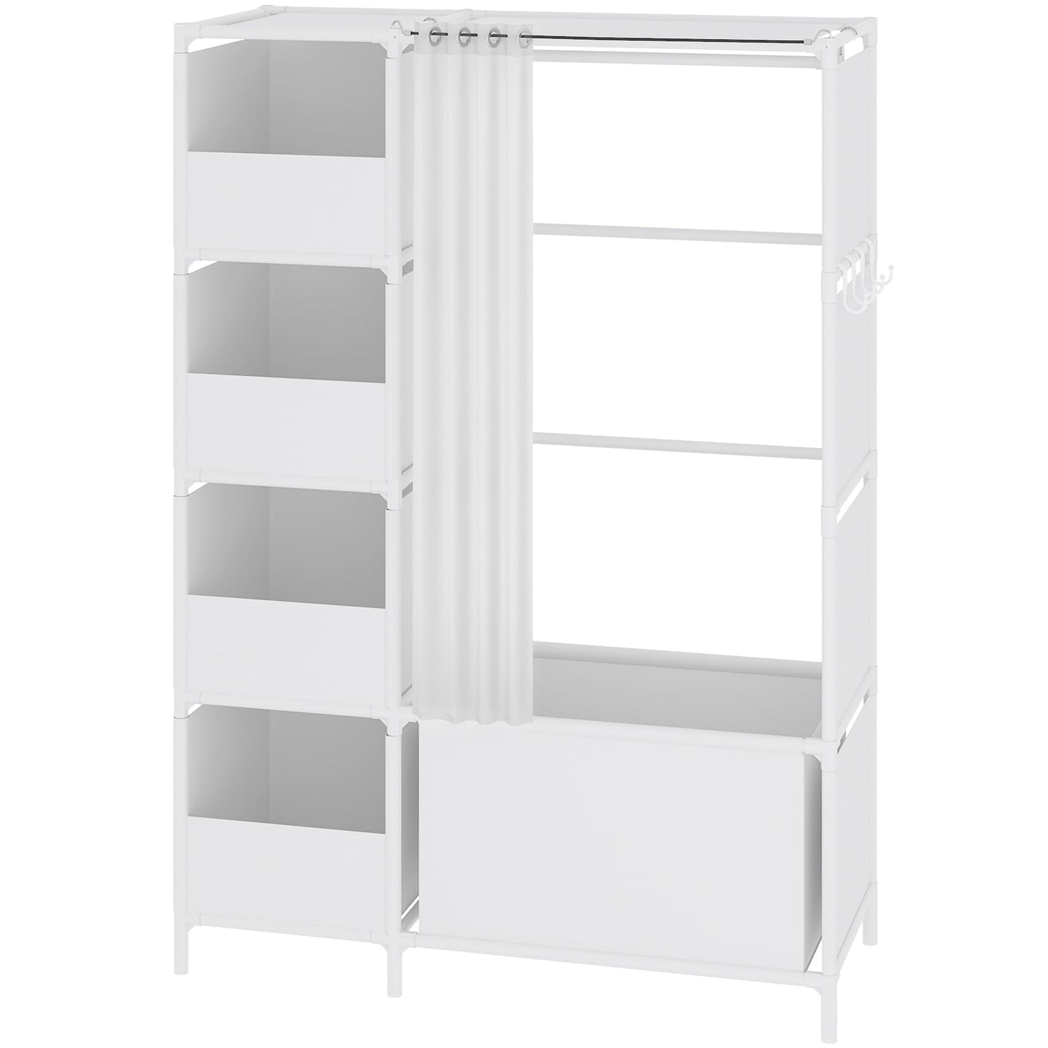 MOYIPIN Portable Closet,Free Standing Wardrobe Closet with Hanging Rod and Curtain,Clothes Storage Organizer, for Cloakroom, Bedroom,40.55 x 16.73 x 65.35Inches,White
