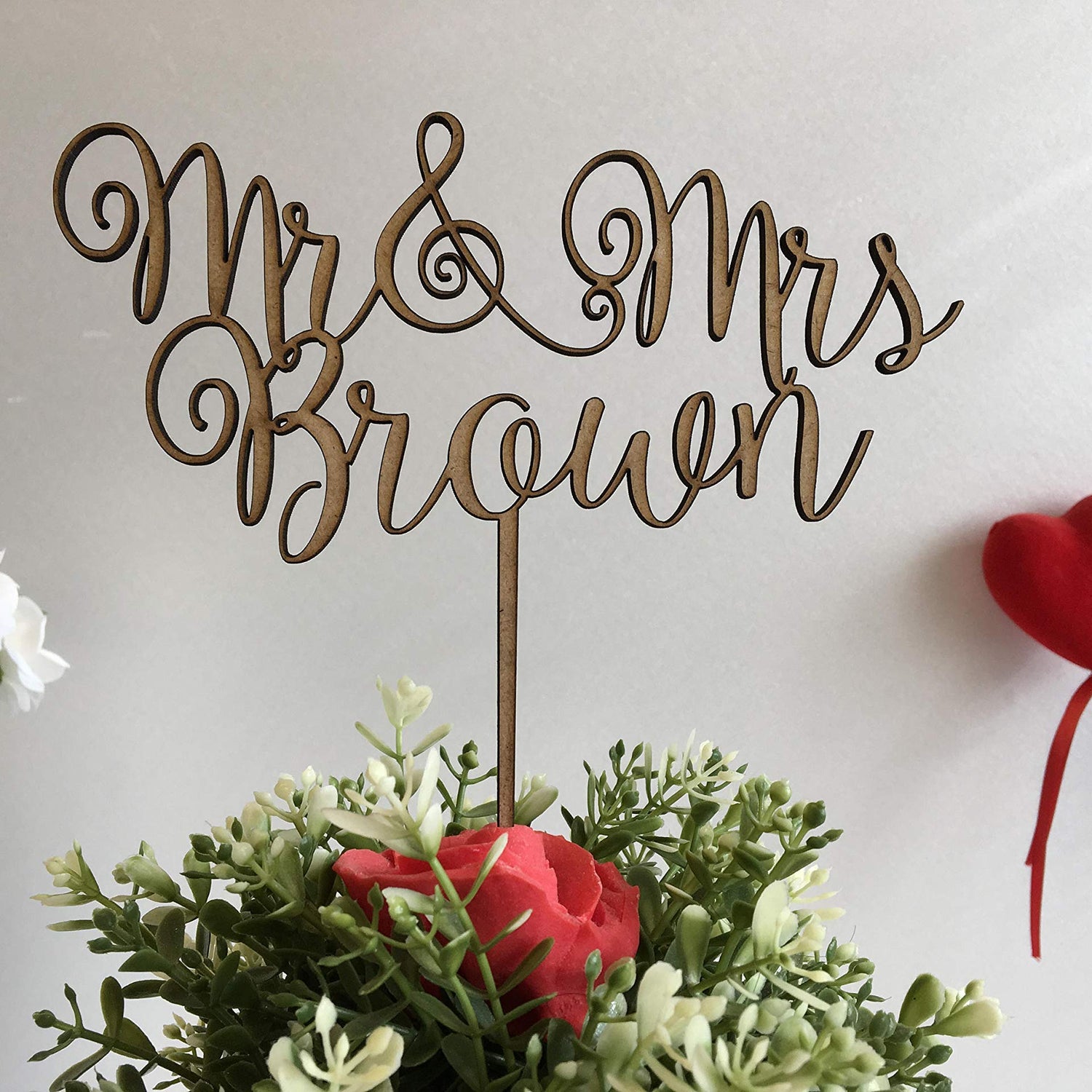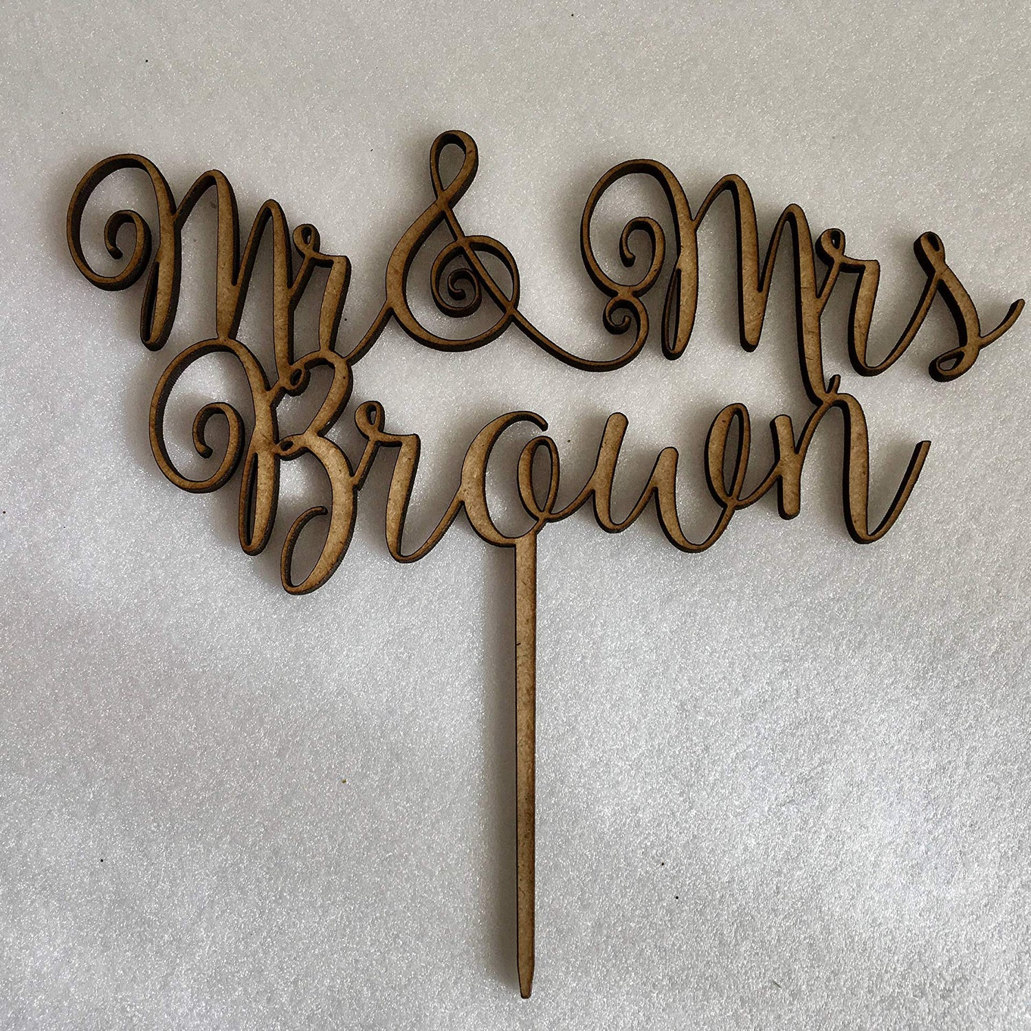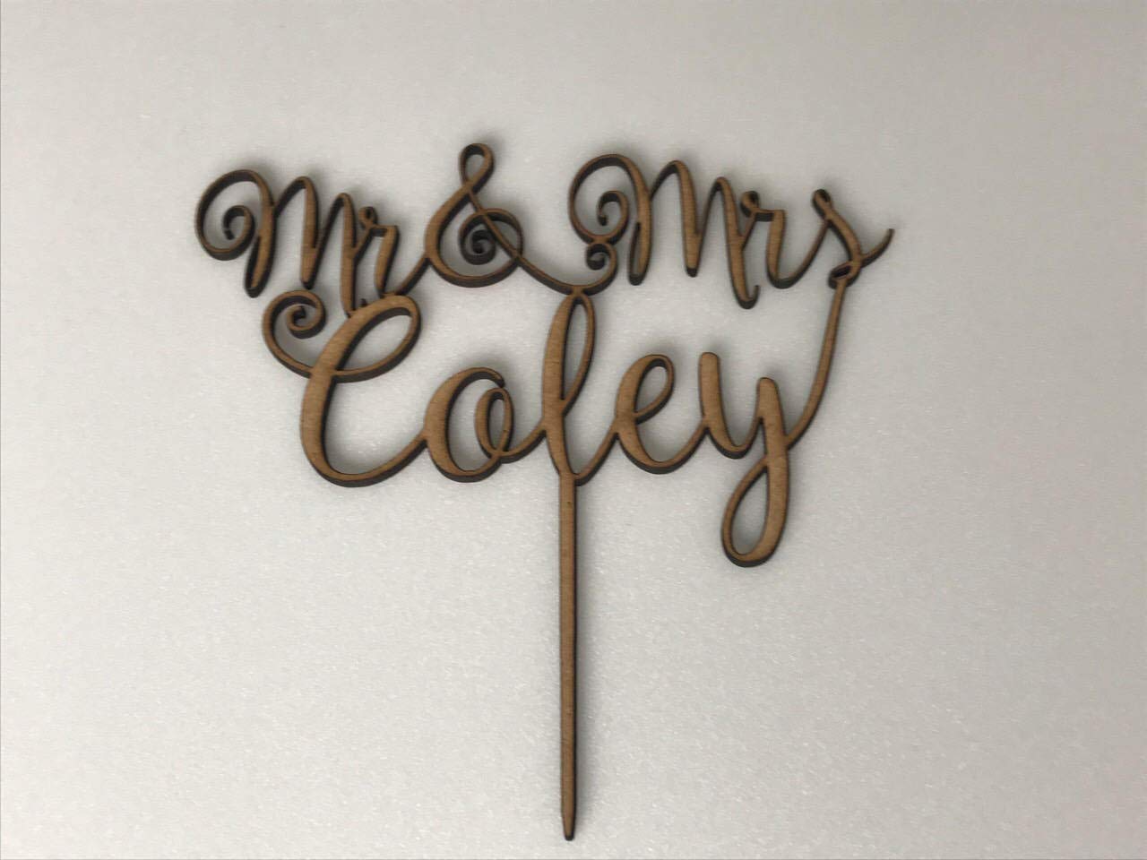- A pretty personalised wedding cake topper to decorate your cake with your new shared surname!Adding the perfect personalised touch to your cake and making a great keepsake.