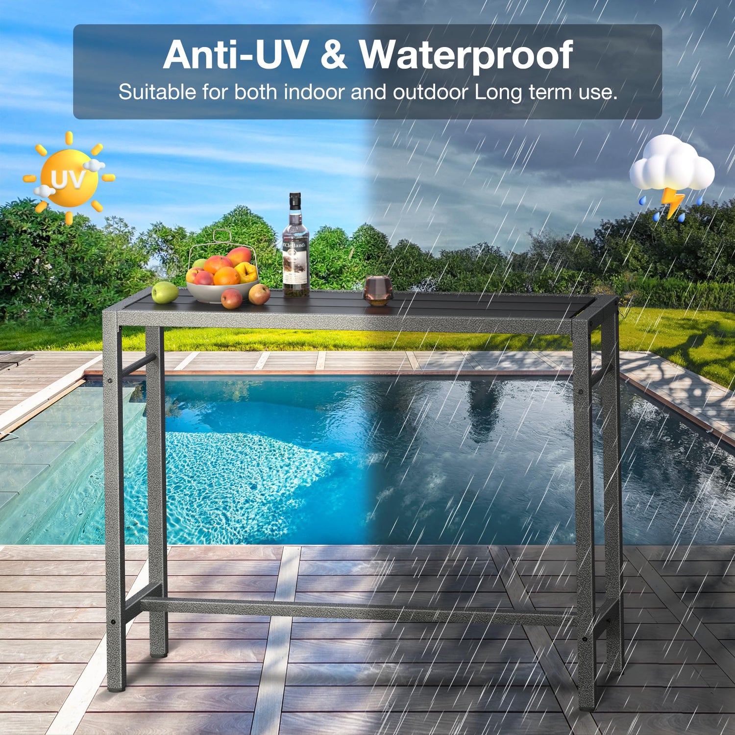Mr IRONSTONE Outdoor Bar Table 47'' Patio Table Pub Height Dining Table with Waterproof Top and Hammer Finish Stand for Hot Tub, Garden, Backyard, Indoor