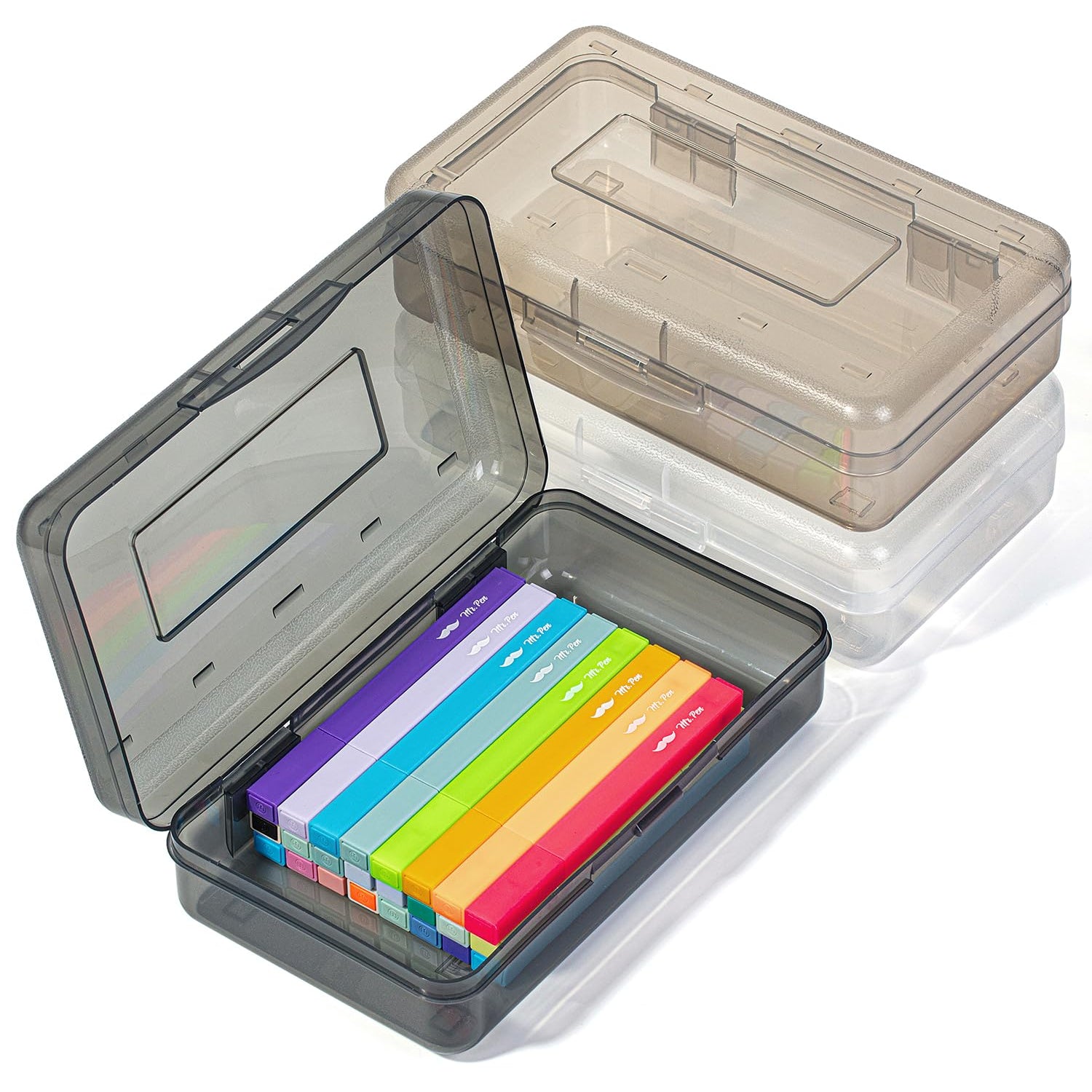 Mr. Pen- Clear Pencil Boxes, 3 Pack, Grey Shades, Snap-Tight Lid, Plastic Pencil Box Organizer, 7.9"x4.5"x2.4"