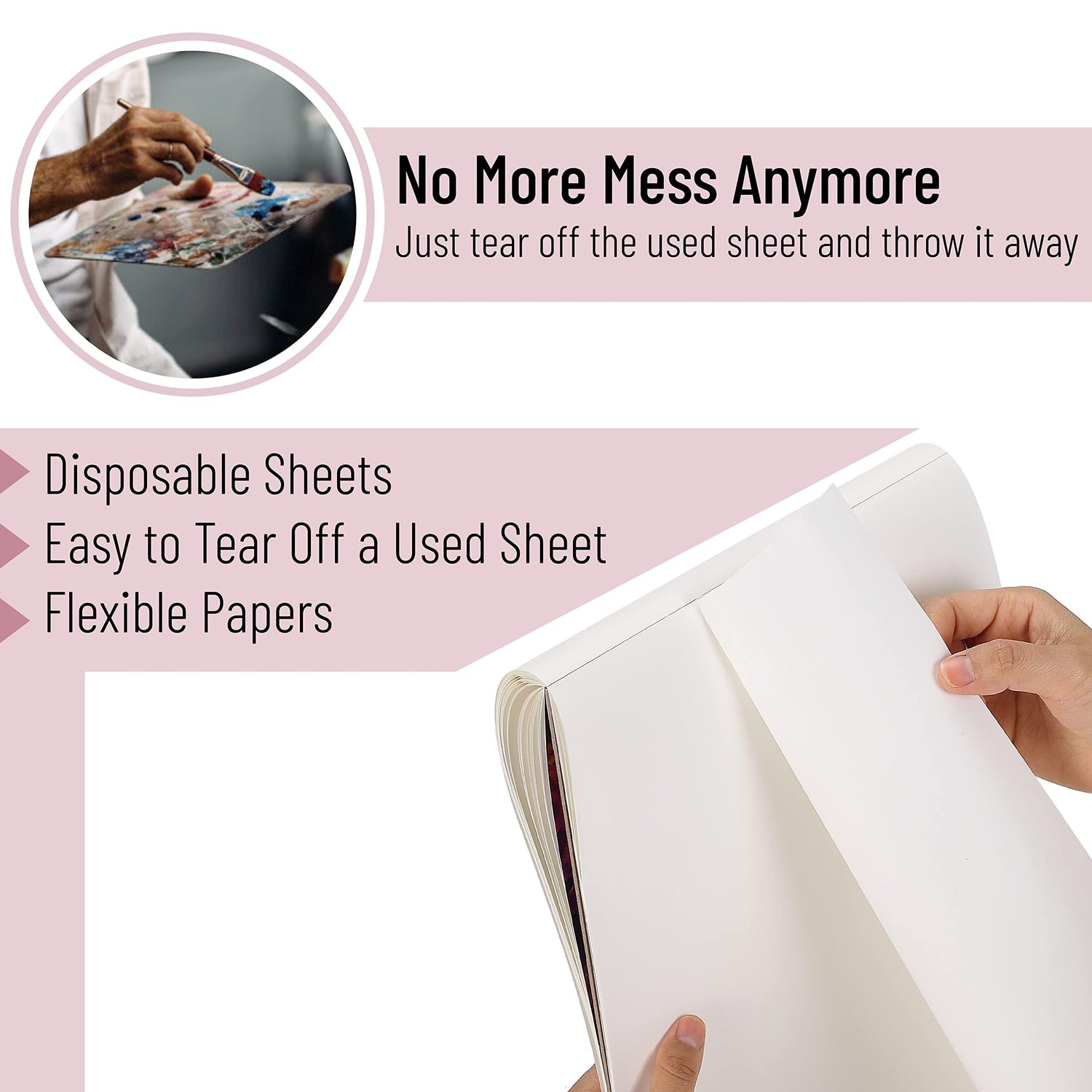 - The 9" x 12" surface is a suitable space for all your mixing needs. Each sheet of this painting palette is poly-coated, and you can easily use it as a disposable palette for simple and easy mixing without worrying about the cleanup.
