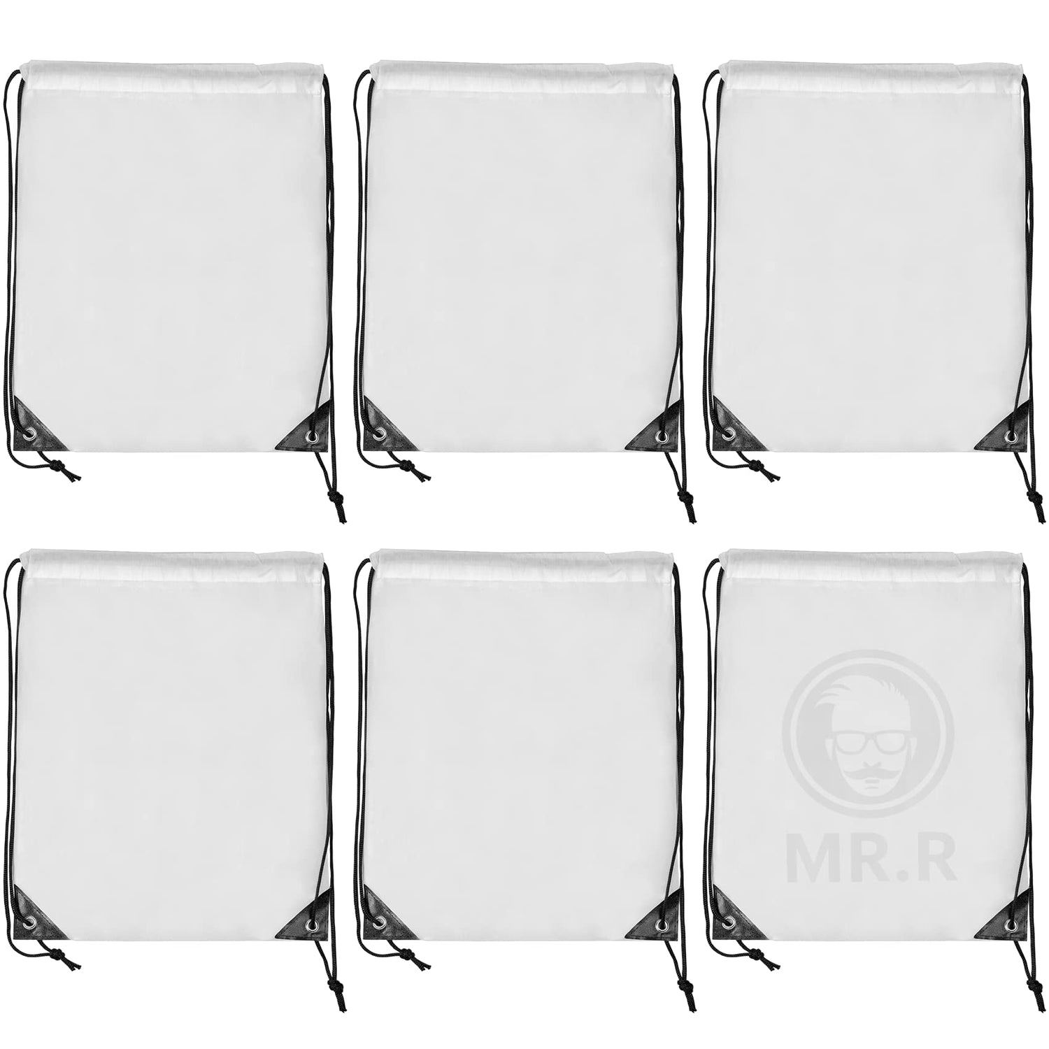 MR.R 13x17 inch 6 Pieces Sublimation Blanks Reusable Polyester Drawstring Backpack Bags, Storage Bags with Drawstrings for Heat Transfer Printing,White Color