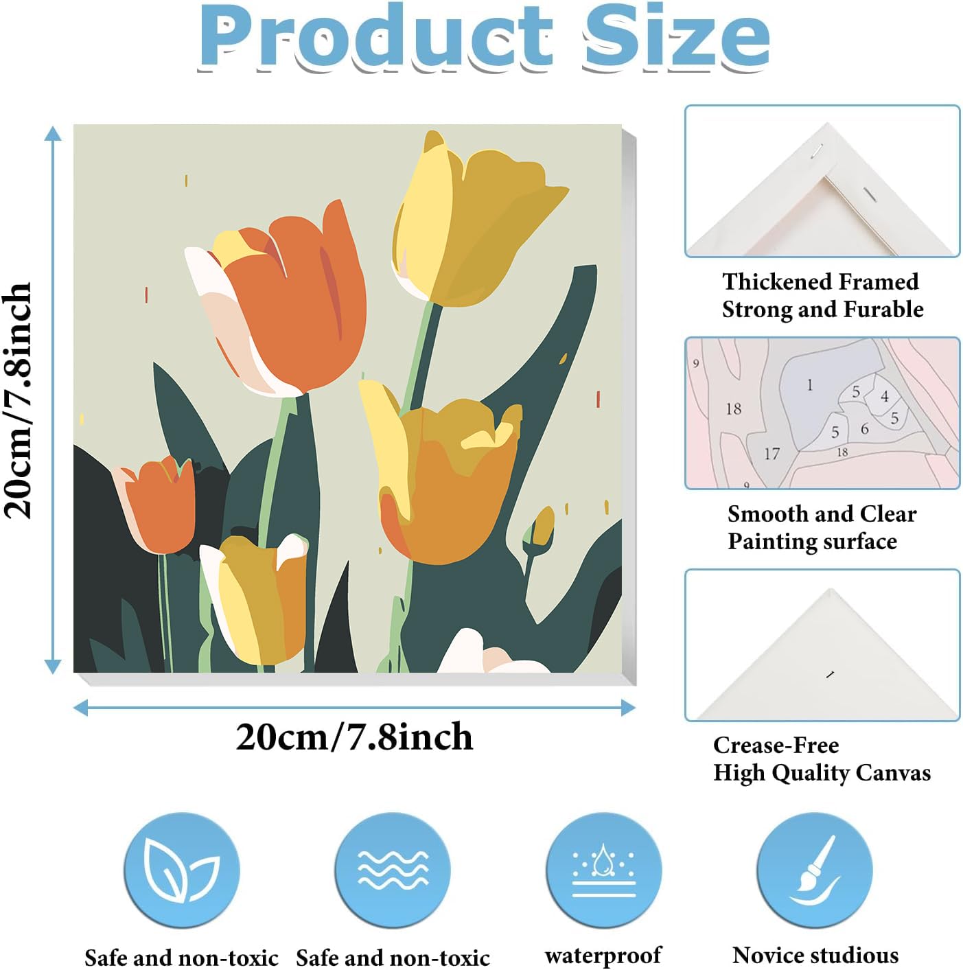 mrpwnle 4 Pack Flowers Paint by Numbers Kit for Adults Beginner Framed-Small Easy Adult Paint by Numbers Kits On Canvas Adults' Paint-by-Number Kits for Home Wall Decor Gift 8X8 Inch