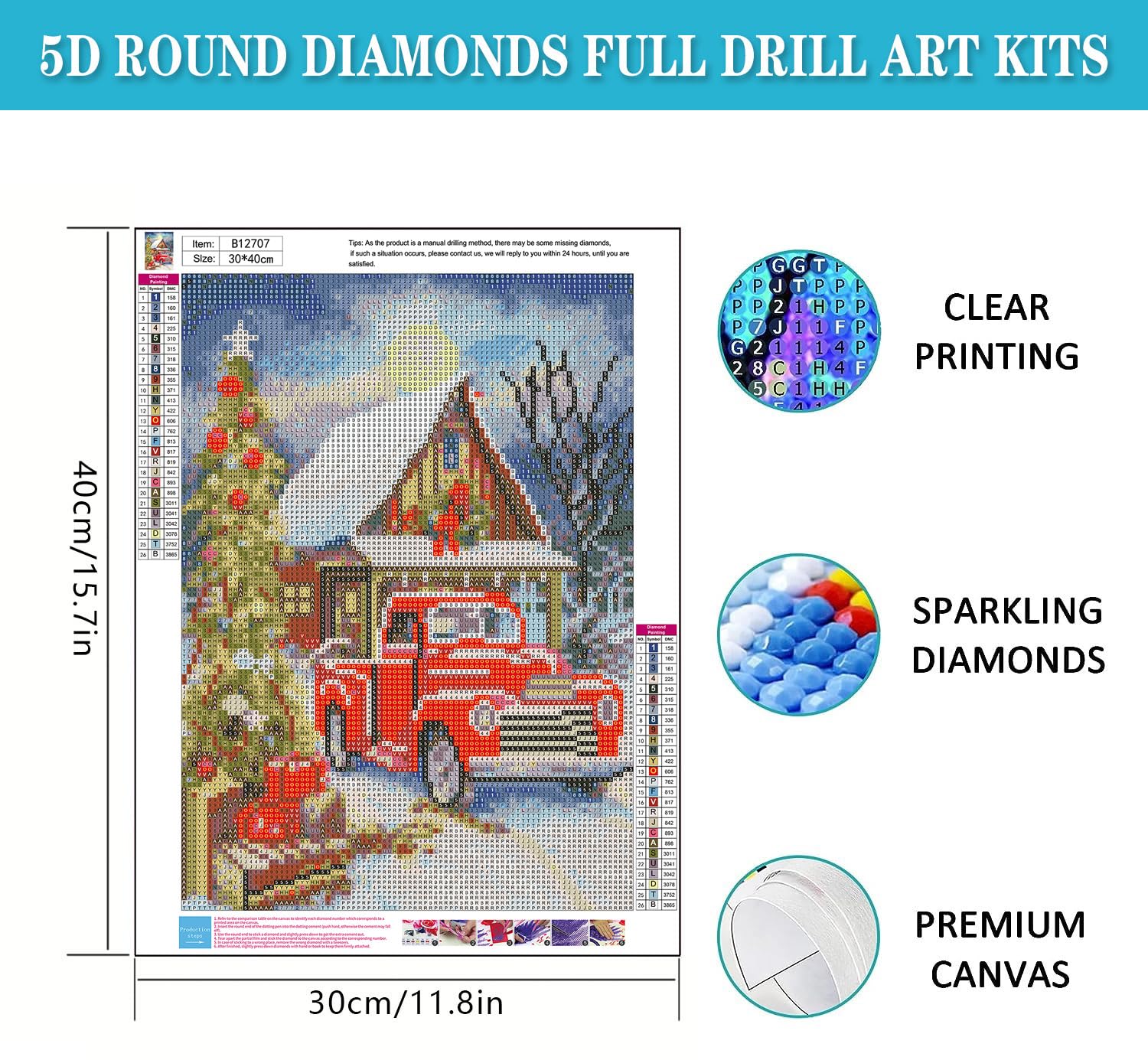 - Ideal Gift: Christmas Red Truck diamond art kit for adults is 100% full diamonds,Our 5D diamond painting kit is perfect for those who love DIY. You can give this Christmas Red Truck Diamond Art Set as a holiday gift to your friends and family and let good luck follow. Simple DIY diamond painting can experience the sense of accomplishment, enhance self-confidence and perseverance, suitable for people of all ages.There's also enough colored diamonds, All tools for your creative needs.