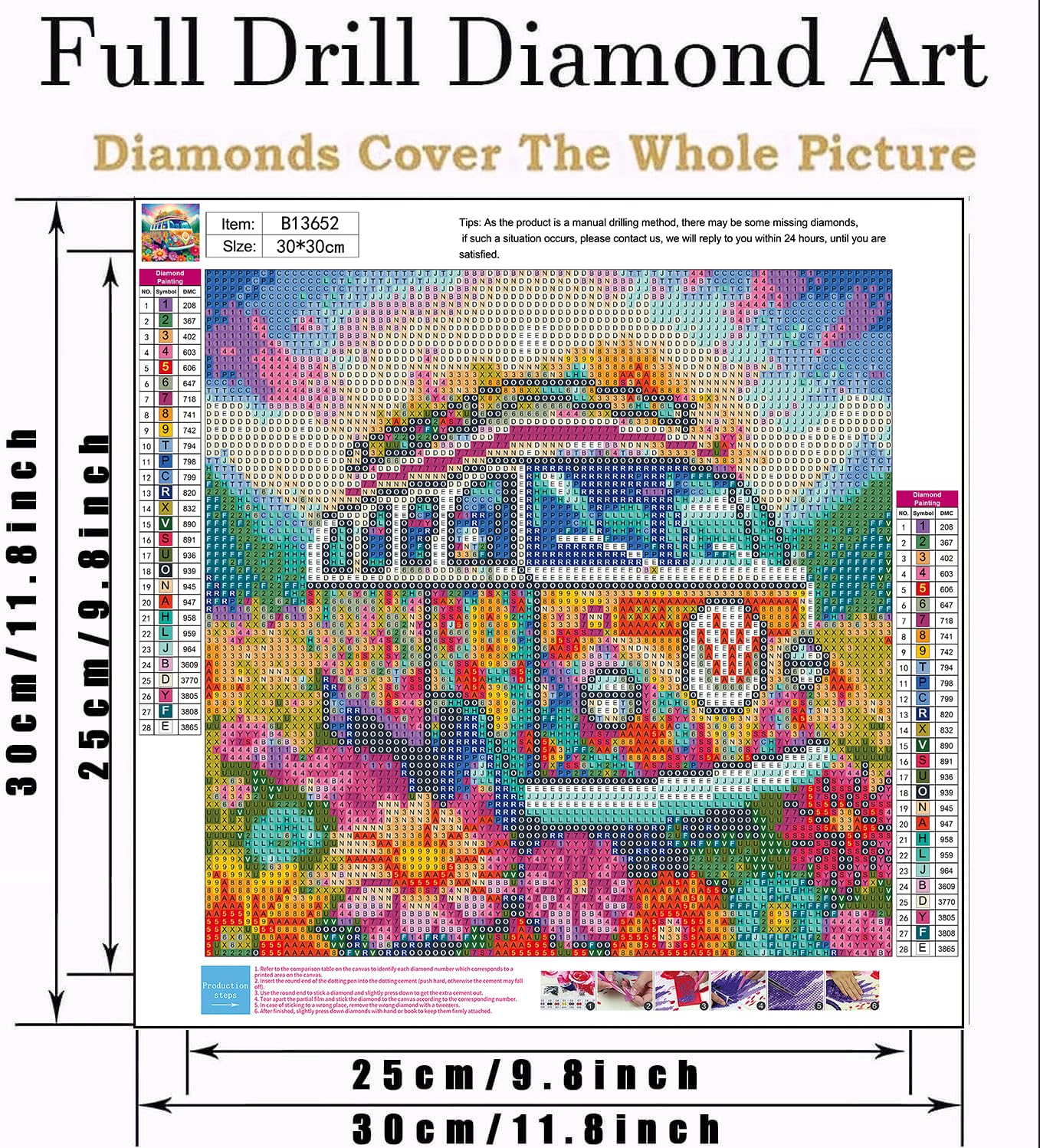 - 【High-quality materials】Flowers Bus diamond painting kits use high-quality pure natural resin materials.The printing oil canvas is high clear printing,the symbols is easy to read.The pattern itself has a hot melt adhesive background and plastic protective film so the diamonds won't fall down once they're pressed onto the canvas.It is light in texture,moderate in brightness,rich in color.