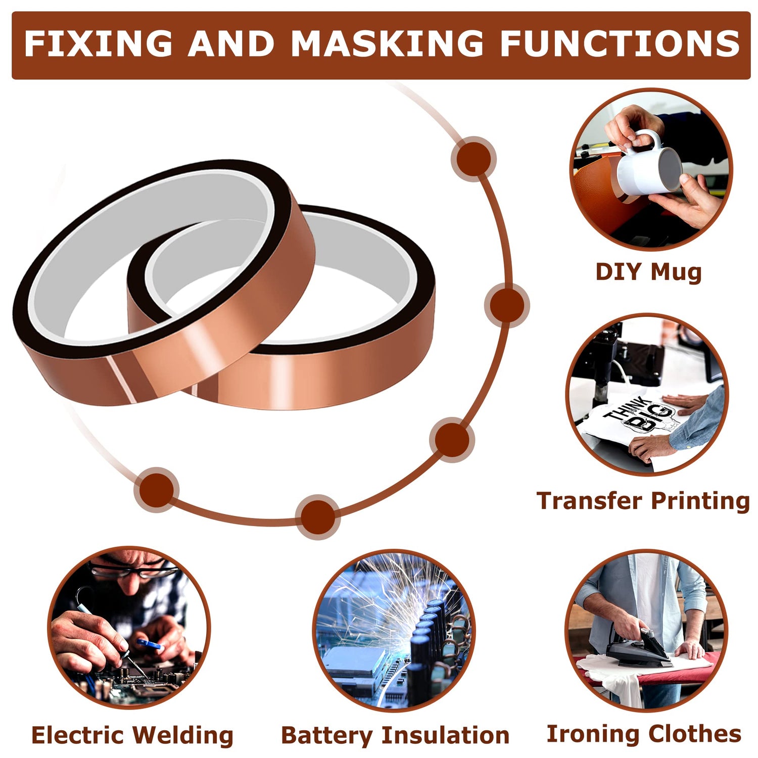- High Temp Tape Size: Width: about 10mm/0.39in; Length: about 33m /108ft. Heat resistance: Short period Heat Resistance:260℃(500°F)Long period Heat Resistance:220℃(428°F)