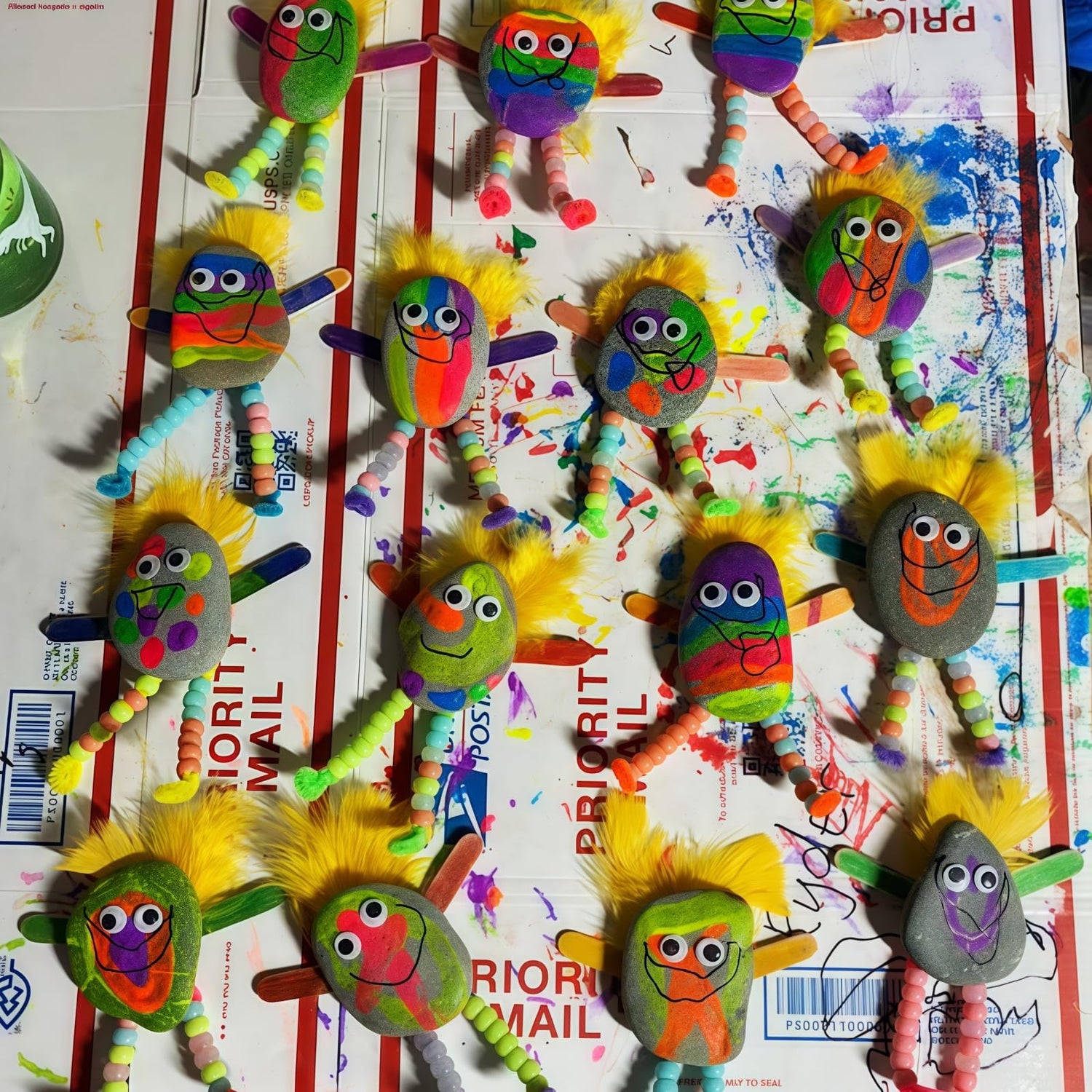 - Rich Materials and Accessories :The kit provides 50 activity eyes, 54 gems stickers, 4 flat rocks ,2 paintbrushes ,2 twisting sticks ,4 bows ,1yarn ,6pom balls . You can add these accessories to the rocks to create more personalized and creative works.