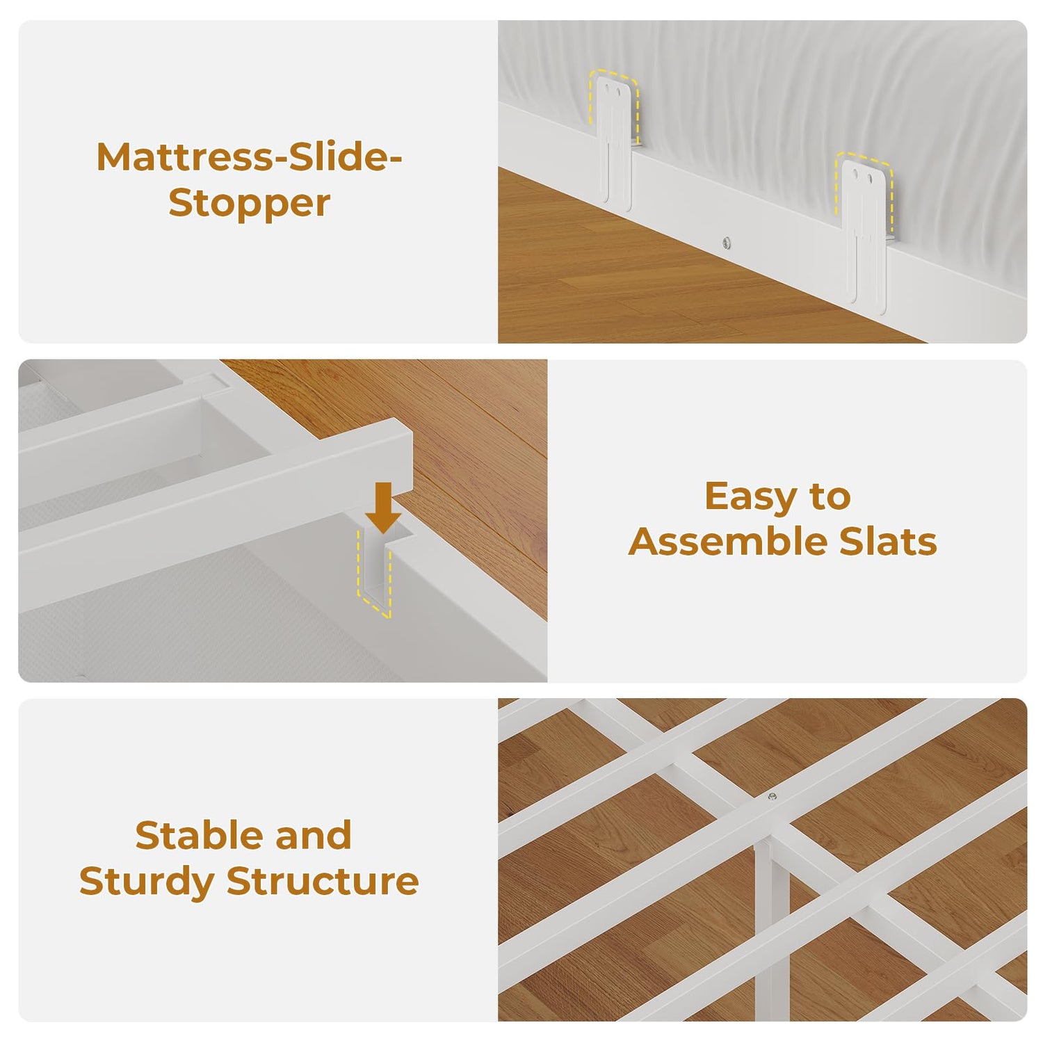 - [Stable and Robust Structure] The heavy-duty bookcase bed frame combines comfort and durability. Equipped with 13 metal crossbars to ensure even weight distribution, 16 support legs provide strong support capabilities. 4 limit iron sheets ensure that the mattress will not slide. Includes EVA silent strips, all designs provide you with an excellent sleeping experience