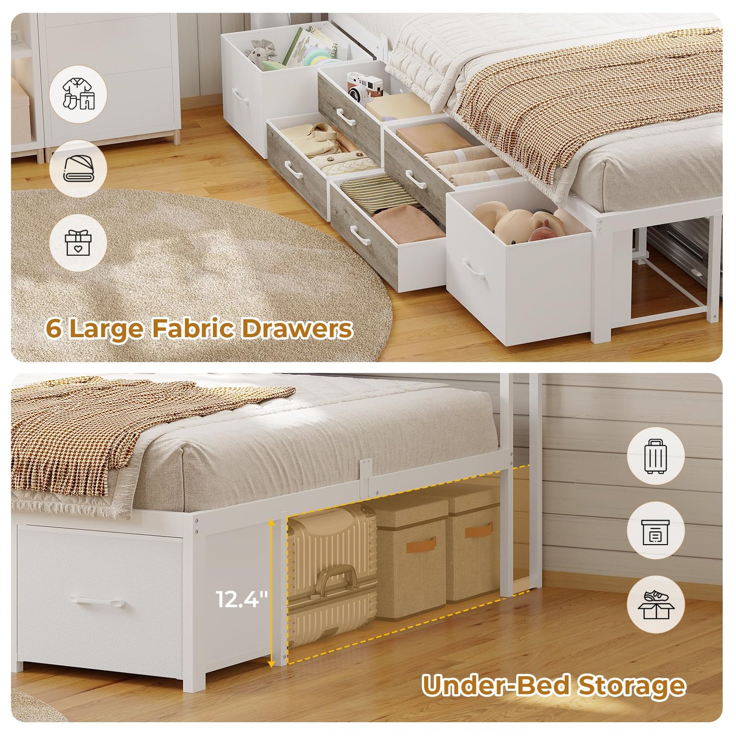 - [6 Drawers & 12.4 Inch Storage] This 14 inch metal platform bed frame full size offers plenty of storage space. It comes with 6 full storage fabric drawers for toys, bed sheets, etc. Designed with 12.4 inch of under-bed storage, this bed frame offers ample space for even the largest suitcases, clothing organizers, boxes and other bulky items
