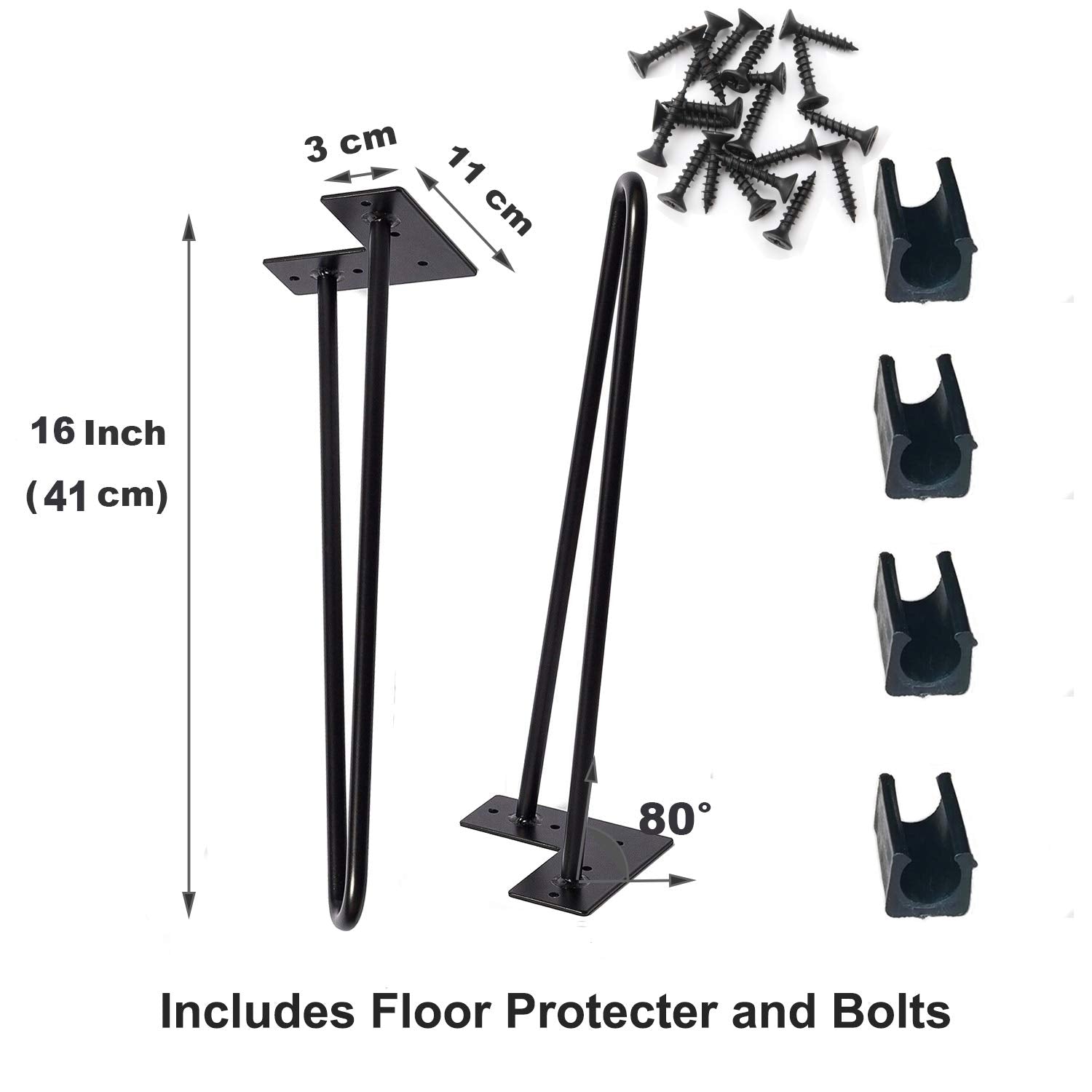 MSOBAIW Hairpin Legs 16 Inch Set of 4, DIY Metal Table Furniture Legs Ideal for Dining Table, Desk, 3/8" Diameter Mid Century Modern Style (16", Black)