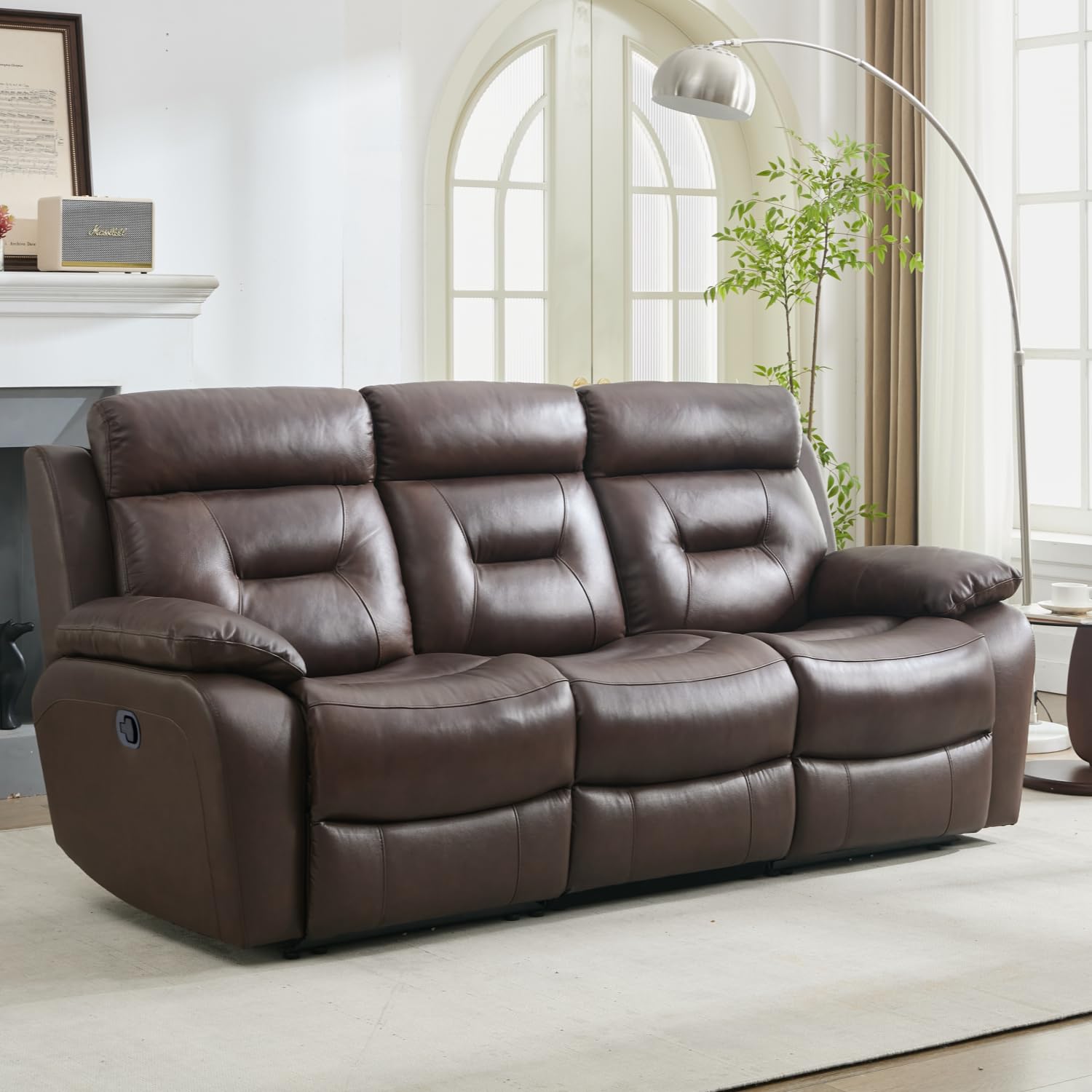 - Genuine Leather Material: This Manual Reclining Sofa adopts high-quality top grain leather material, which is smooth, skin-friendly and adds a touch of luxury to this sofa set, sturdy solid wood frame and metal frame make the maximum weight capacity of the 3-seaters recliner up to 795 lbs