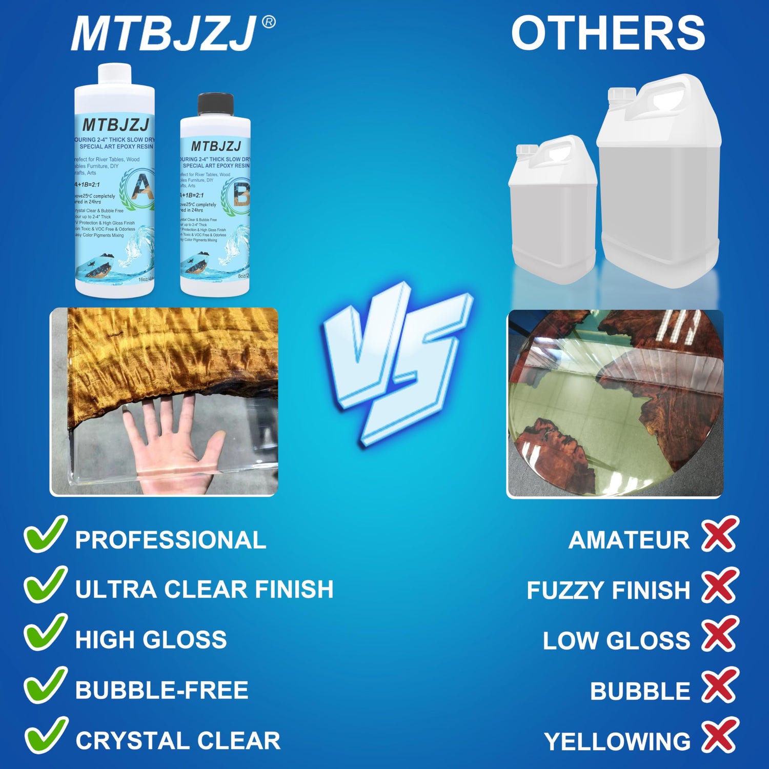 MTBJZJ Deep Pour Epoxy Resin, Crystal Clear Resin Kit 24oz, 2"-4" Ultra Clear Finish & Bubble-Free, 2:1 Art Casting Resin for Epoxy River Tables, Wood