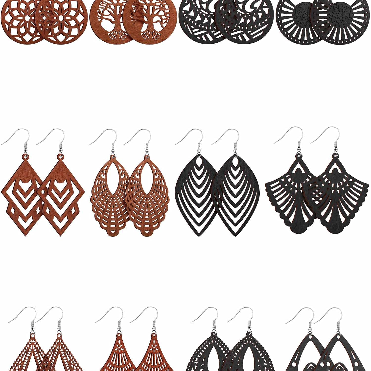 - What you get: you will receive 12 pairs of African wood dangle earrings in one package, including 12 different kinds of styles, enough quantity and styles can meet your needs for daily wearing and matching, making you a dazzling presence in the crowd