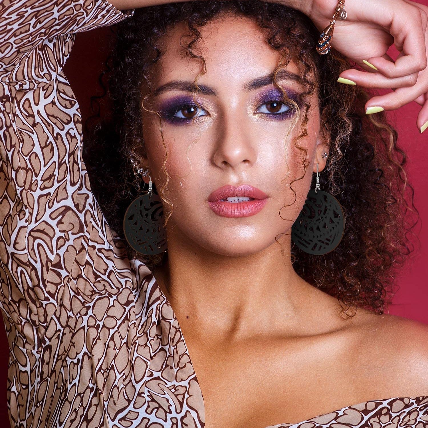 - Easy to match: the ethnic style wood earrings are beautifully designed from the outside, giving a vintage feel, you can use to accompany your dresses, shirts, pants, sweaters, jackets and so on, so that you look more attractive and good-looking