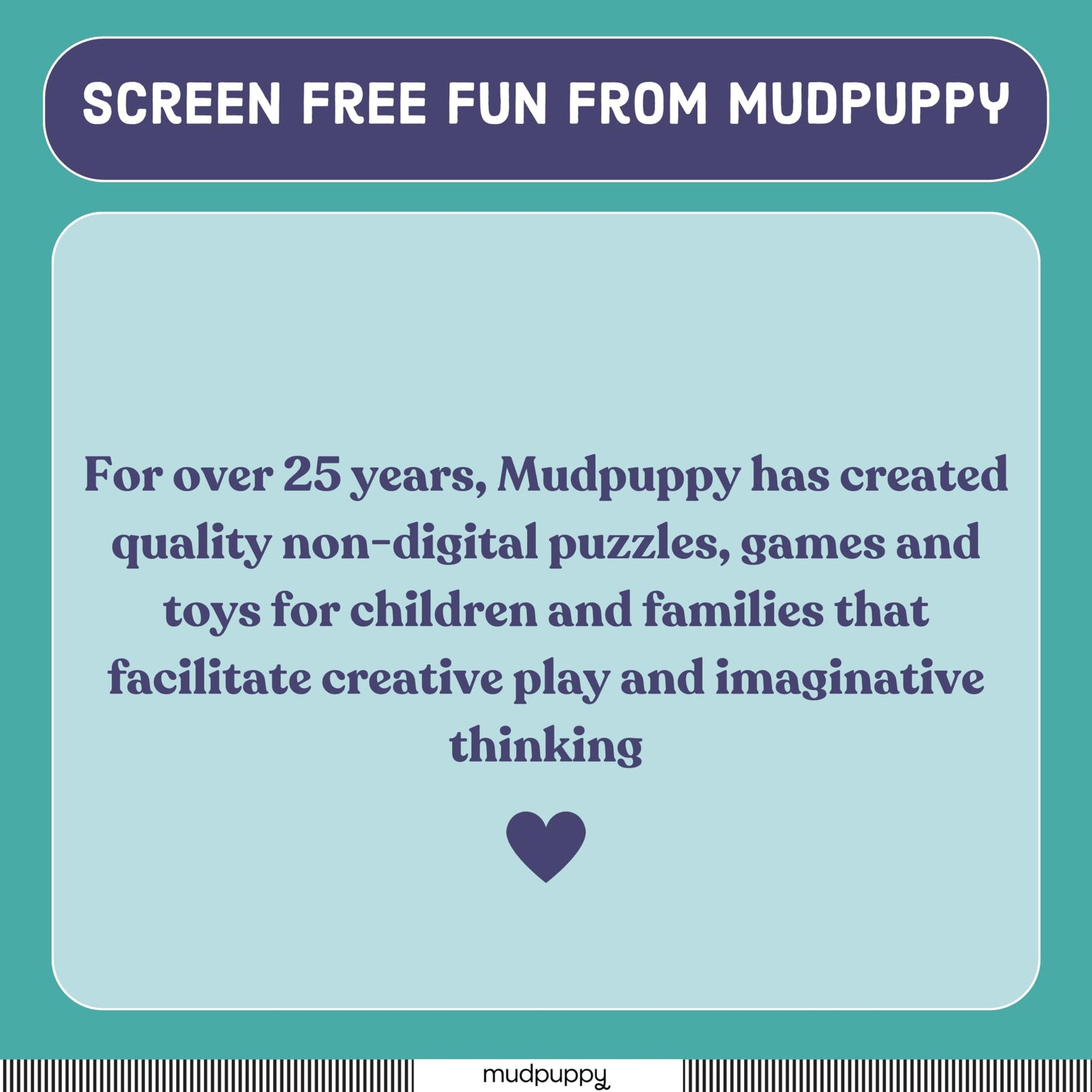 - MUDPUPPY - For over 25 years, Mudpuppy has created quality non-digital puzzles, games and toys for children and families that facilitate creative play and imaginative thinking. One of our core design principles is to engage kids and promote learning without the use of digital screens or technology. Mudpuppy is committed to designing and producing eco-friendly products that have a minimal carbon footprint. All Mudpuppy products adhere to CPSIA, ASTM, and CE Safety Regulations