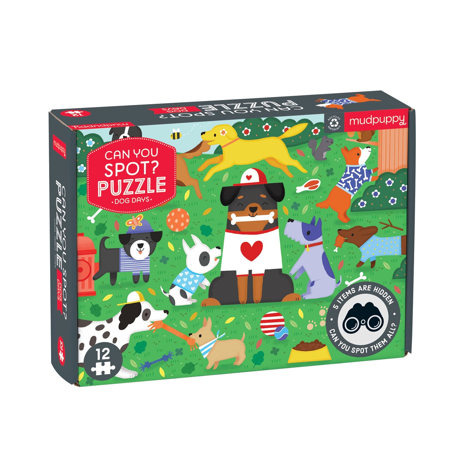- 12-PIECE PUZZLE: The Dog Days Can You Spot? Puzzle from Mudpuppy is just the right level of challenge for children ages 2+ and is a fun indoor activity for hours of puzzling fun.