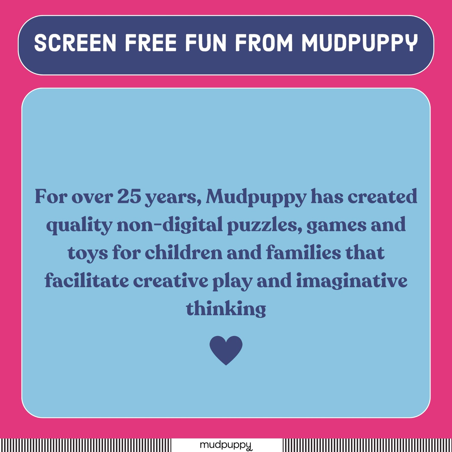 - 🦄MUDPUPPY - For over 25 years, Mudpuppy has created quality non-digital puzzles, games and toys for children and families that facilitate creative play and imaginative thinking. One of our core design principles is to engage kids and promote learning without the use of digital screens or technology. Mudpuppy is committed to designing and producing eco-friendly products that have a minimal carbon footprint. All Mudpuppy products adhere to CPSIA, ASTM, and CE Safety Regulations