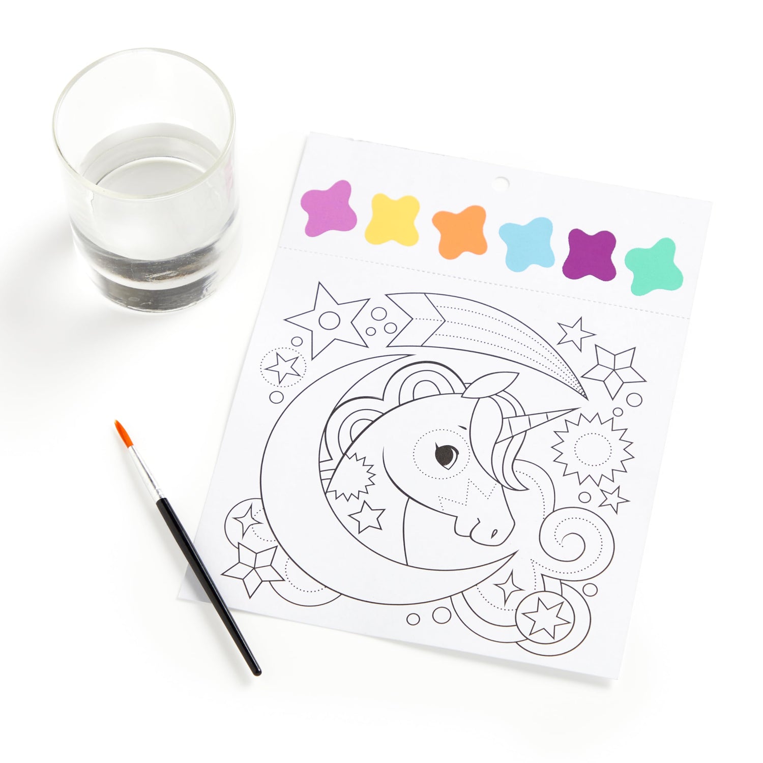 Details: The Unicorn Dream Painting Kit includes 10 pretty unicorn illustrations with a built in paint palette and paint brush so kids can paint with whatever colors they choose
