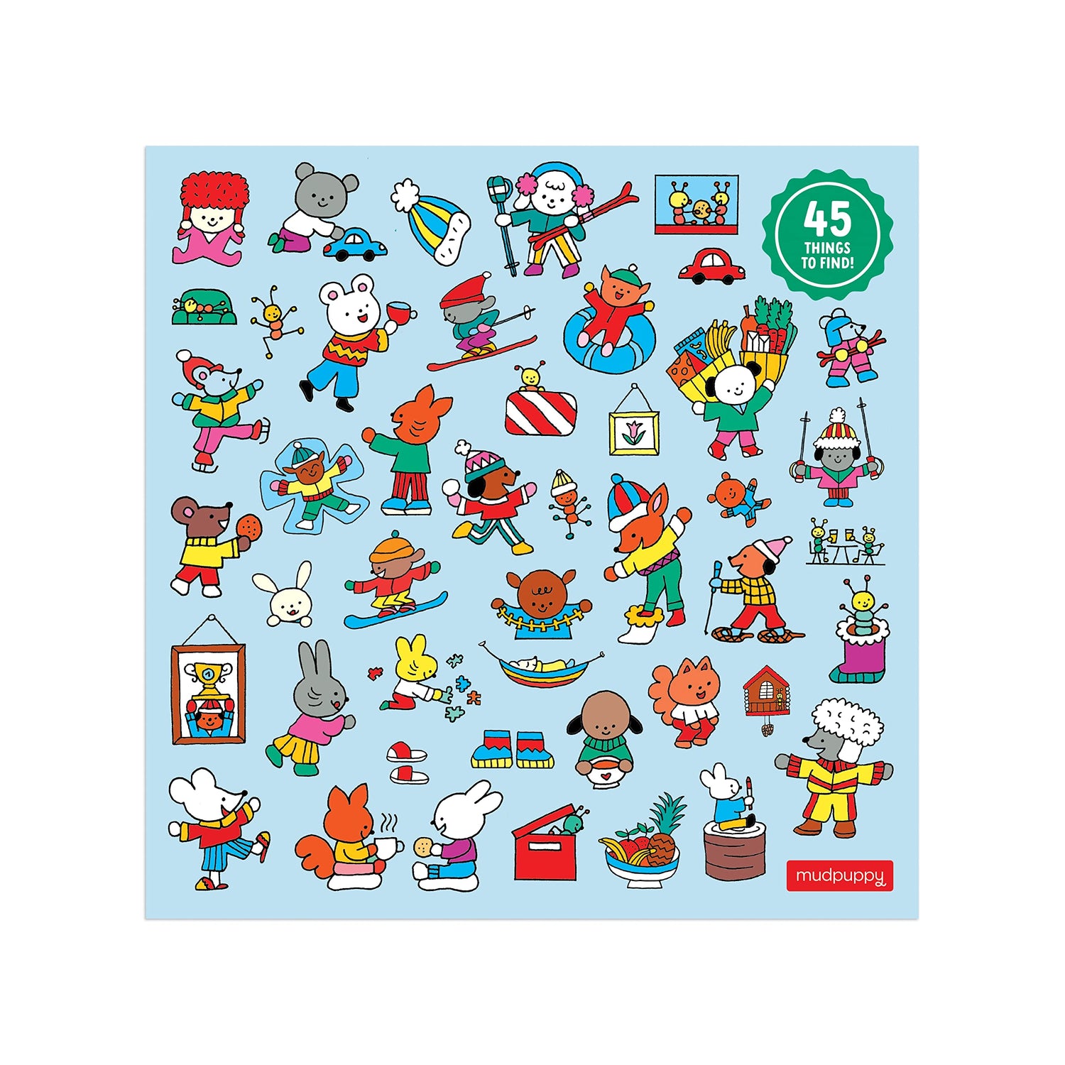 - ☃️500-PIECE PUZZLE: The Winter Chalet 500 Piece Search and Find Family Puzzle from Mudpuppy is the perfect activity for families with children 8 years and older. You will have hours of fun assembling this colorfully illustrated puzzle featuring a fun and festive wintery scene.