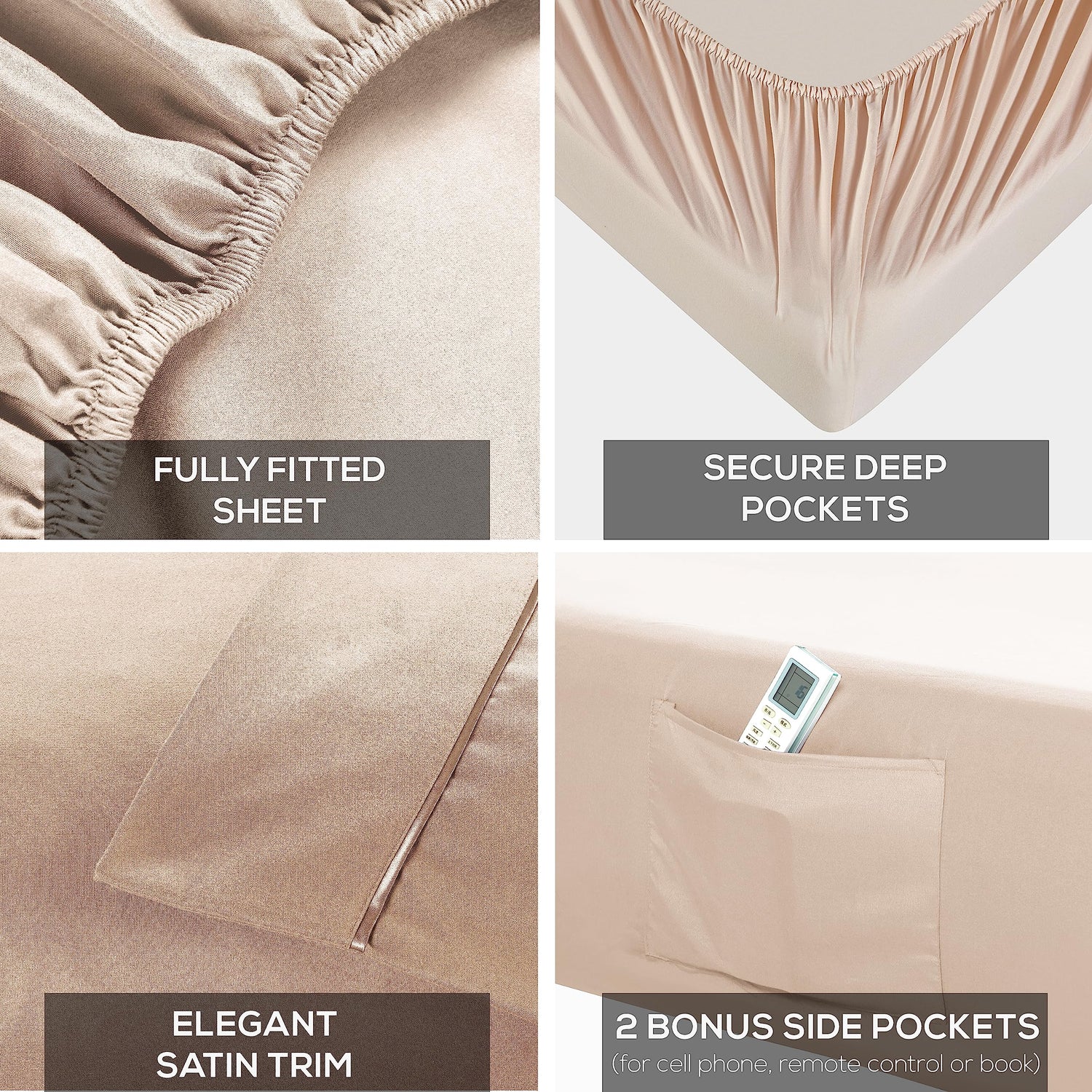 Mueller Luxury 6 Piece Queen Sheet Set - Ultra-Soft 1800 Series, Cooling & Breathable Hotel Quality Bed Sheets, Deep Pocket up to 16" - Hypoallergenic, Wrinkle-Resistant, Oeko-TEX, Cream