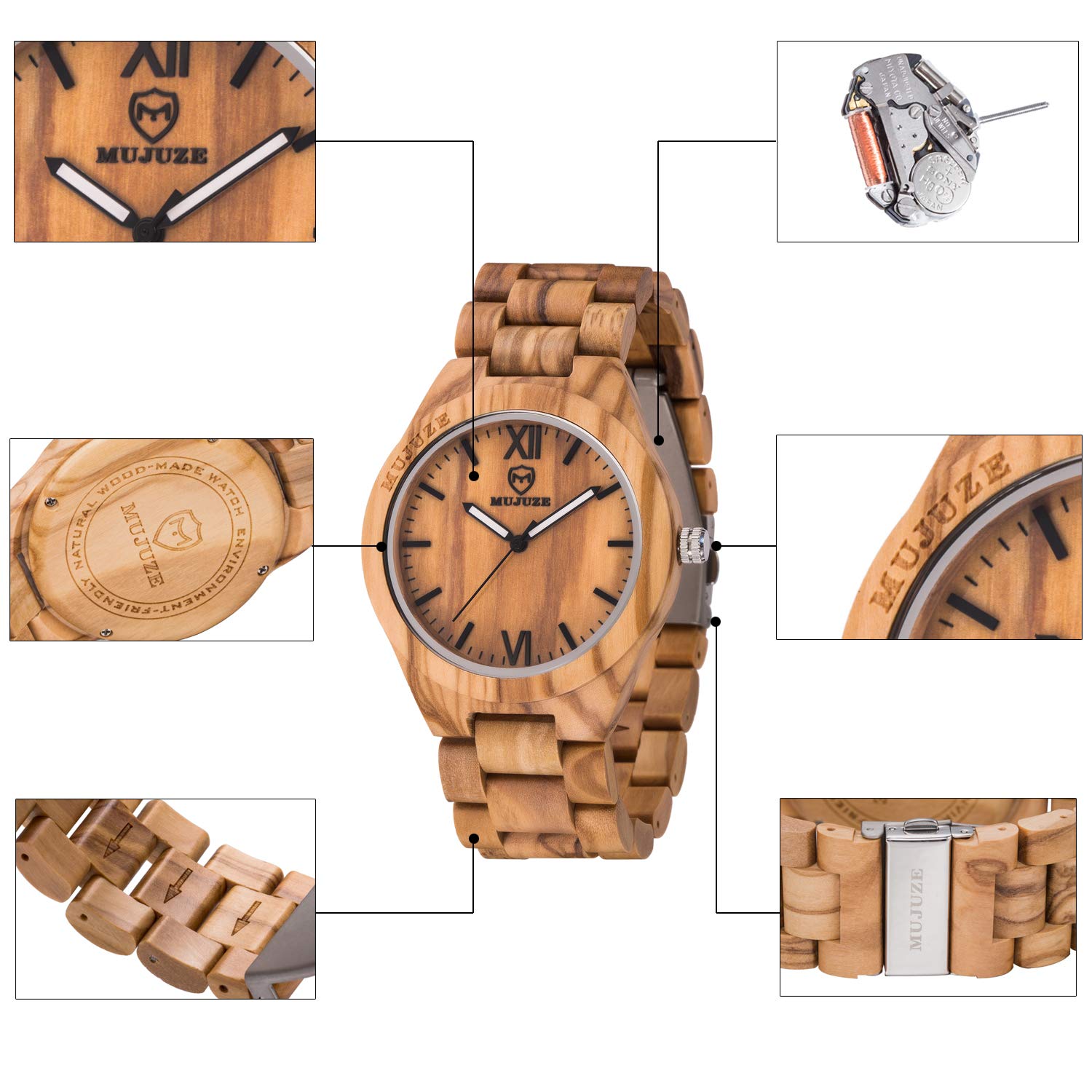 MUJUZE Wood Watch, Wooden Watch for Men, Handmade Lightweight Wooden Wrist Watches, Mens Wooden Watch, Gifts for Men