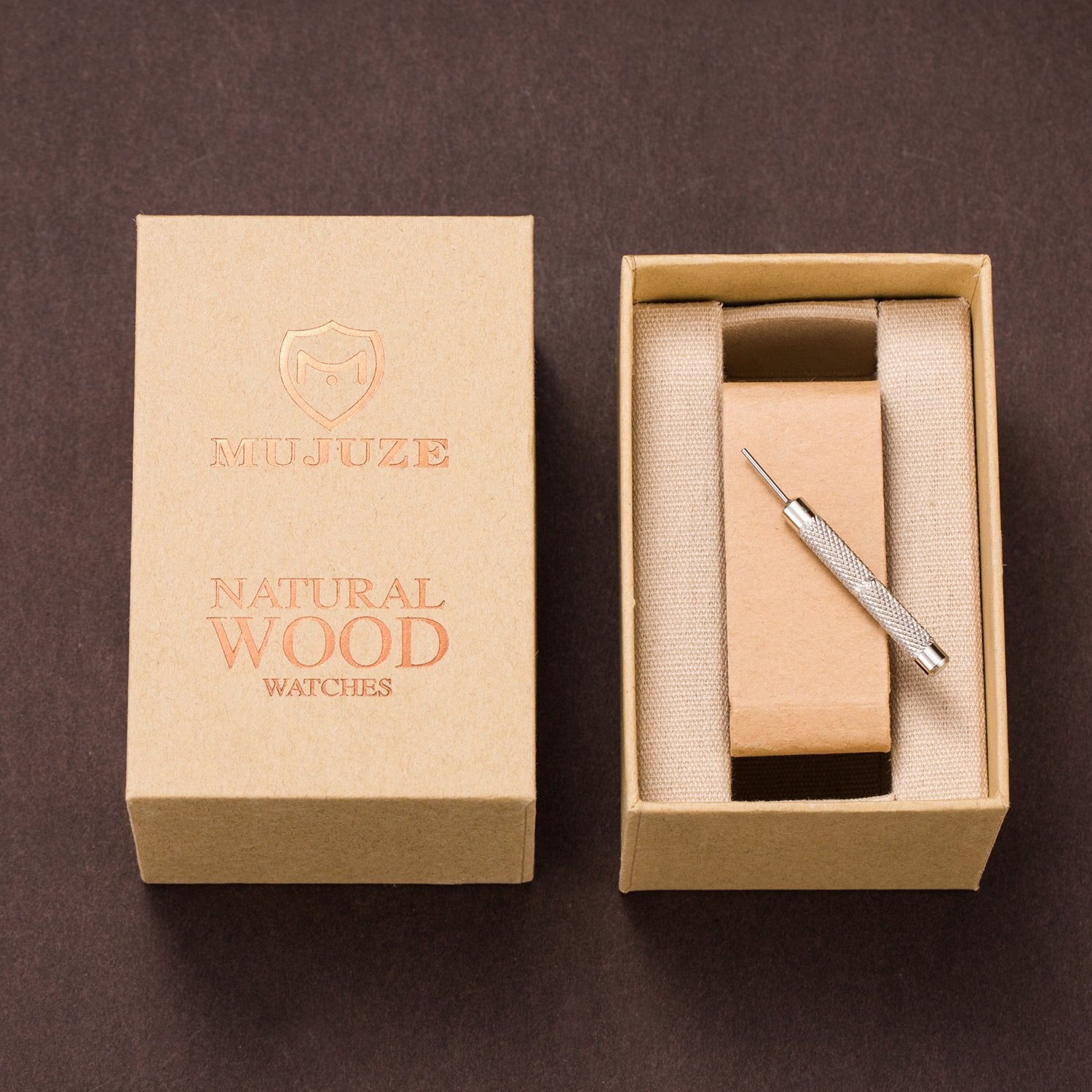 - Adjustable Band and Watch Box: 1 wood watch, 1 watch box, 1 adjust tool, easy to change the wrist watches band size, folding stainless steel clasp, with pressing buckle, very convenient to take on and off