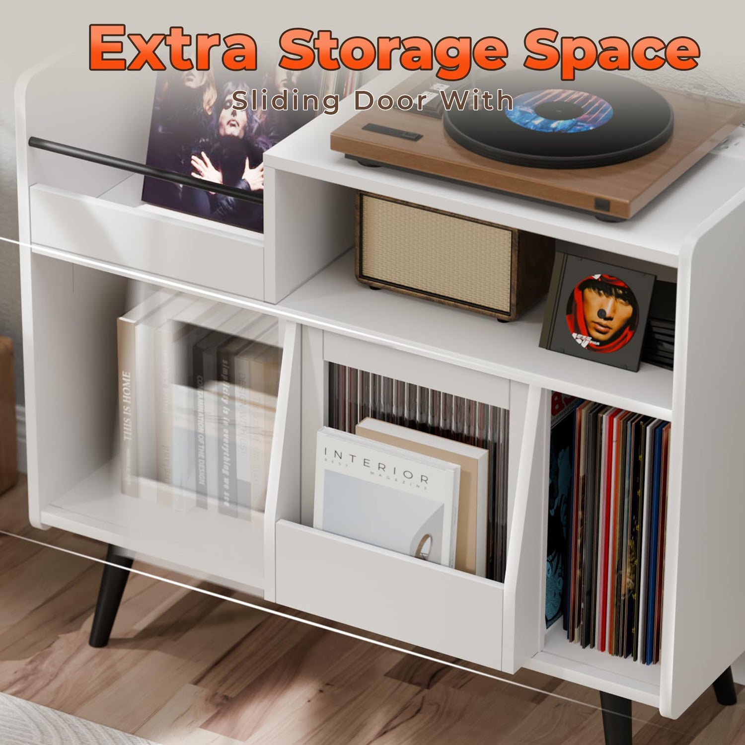 - 【Sliding Door for Extra Storage】 Our record player cabinet feature sliding doors with smooth rails, offering customers the option of increased privacy without the clutter. The sliding door design also includes extra storage space, ideal for storing your preferred records or books in a convenient and accessible manner.