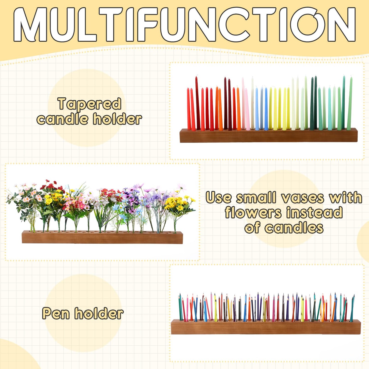 - Portable Size: the wood candle holder measures about 36 x 3.15 x 2.36 inches/ 91.5 x 8 x 6 cm, making it an imposing yet elegant piece to showcase; Each candleholder has 36 holes, all of which are suitable for tapered candles of 7/8 inches standard size, providing a warm and inviting atmosphere to your room