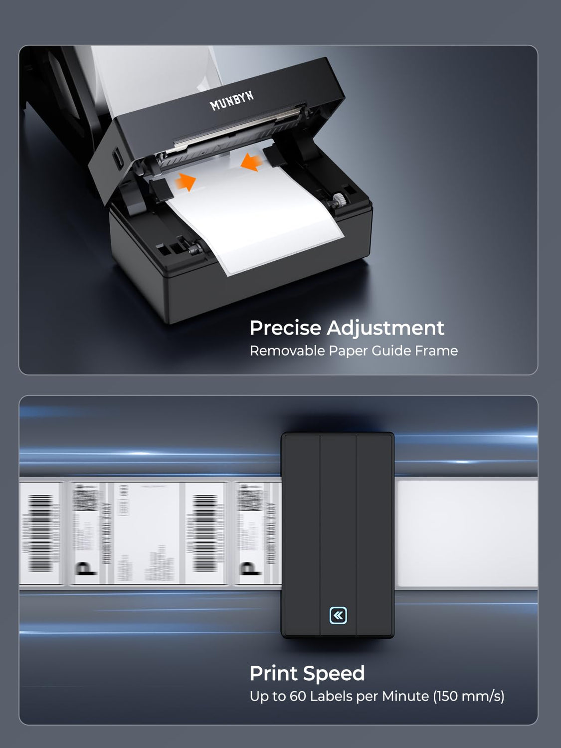 - Save Wisely with Munbyn Realwriter Series: Print ultra-clear at 72 pages/min, reducing errors and waste. Eliminate outsourcing, ink, and toner costs for smart savings with the Munbyn thermal printer 130B and our branded labels that resist smudges and fading