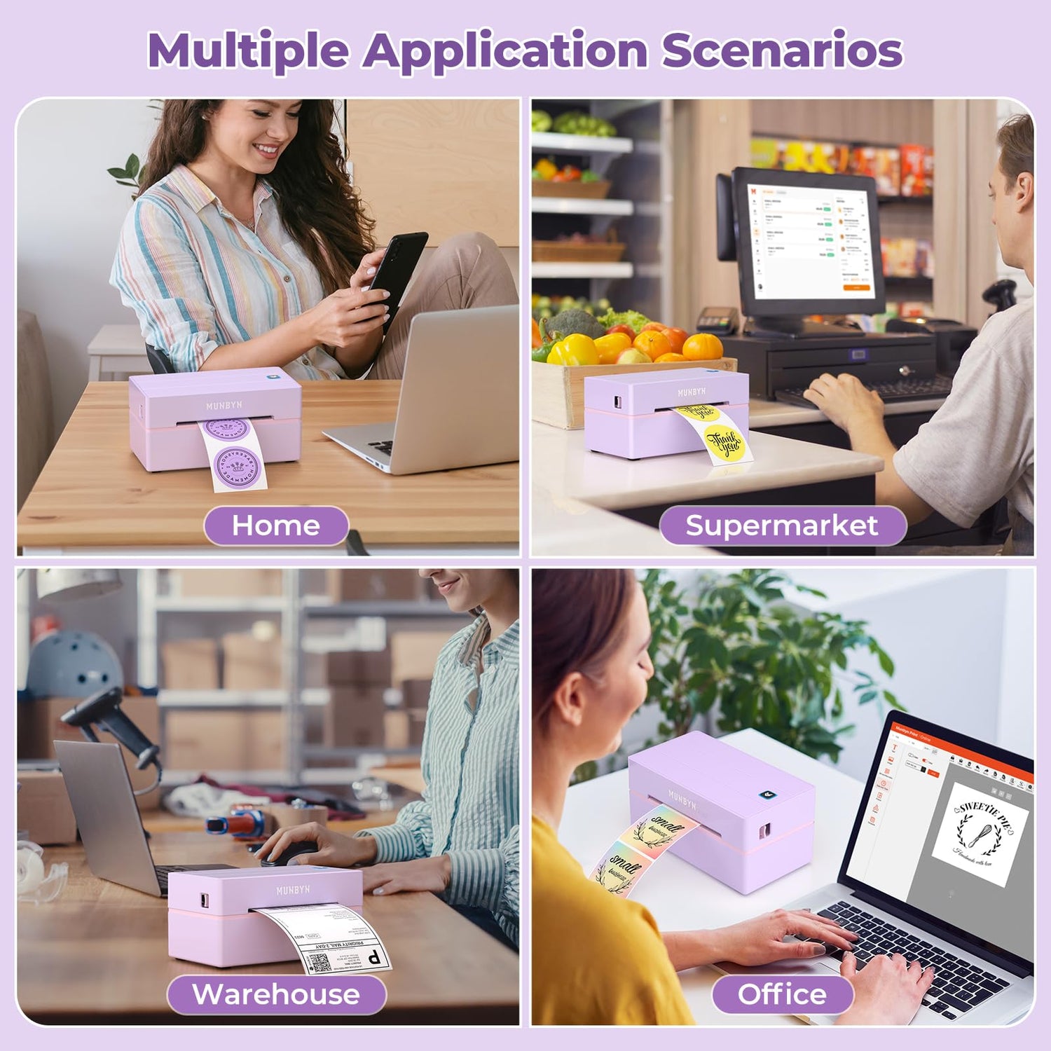 - Wide Compatibility: The Bluetooth thermal printer is compatible with eBay, Etsy, Shopify, UPS, and other major shipping and shopping platforms. Suitable for direct thermal labels with widths ranging from 1.57" to 4.3", including envelope labels, package labels, address labels, barcode labels, and labels for home and office