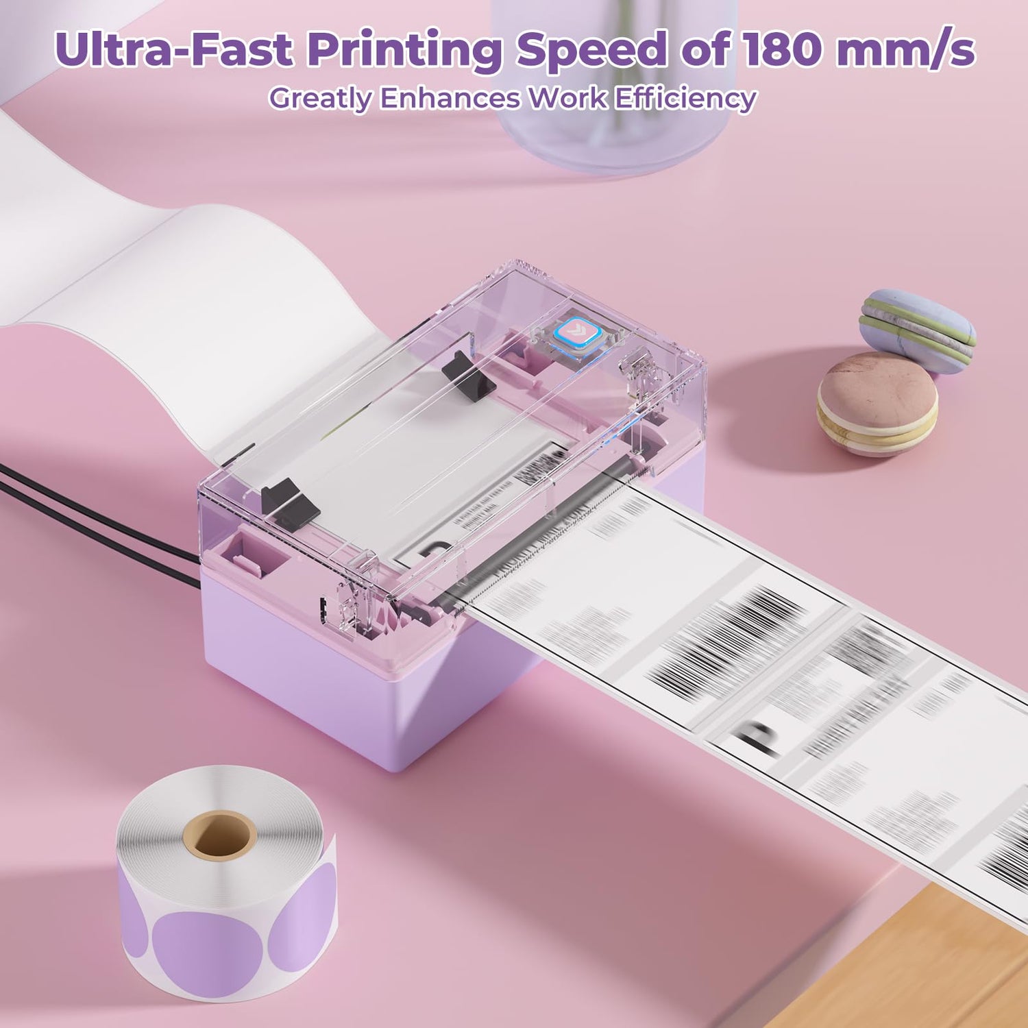 - Portable and High Definition: Weighing only 2.3 pounds, this shipping label printer is easy to carry either on business or on the go. 203DIP clarity helps identify bar codes quickly. 180 mm/sec ultra-fast print speed lets you save time and money