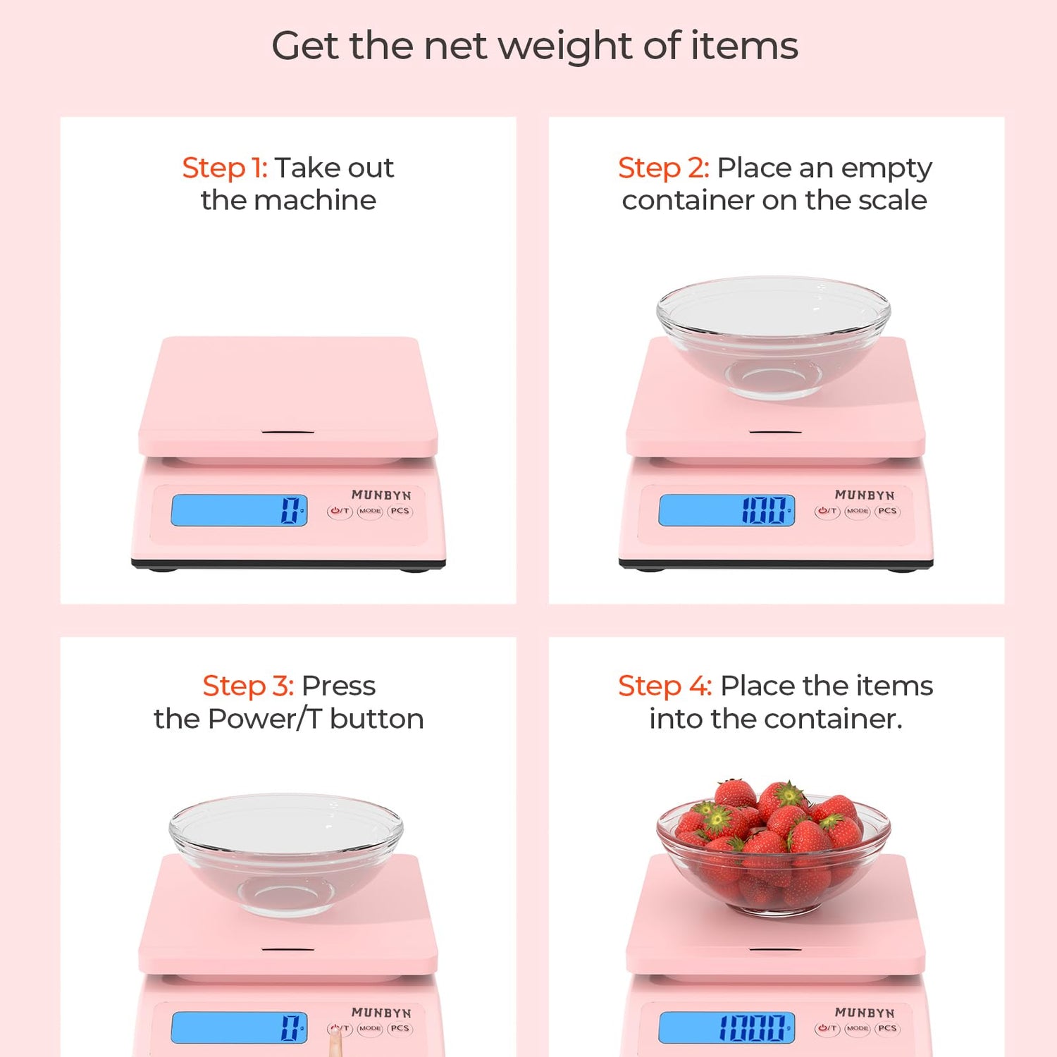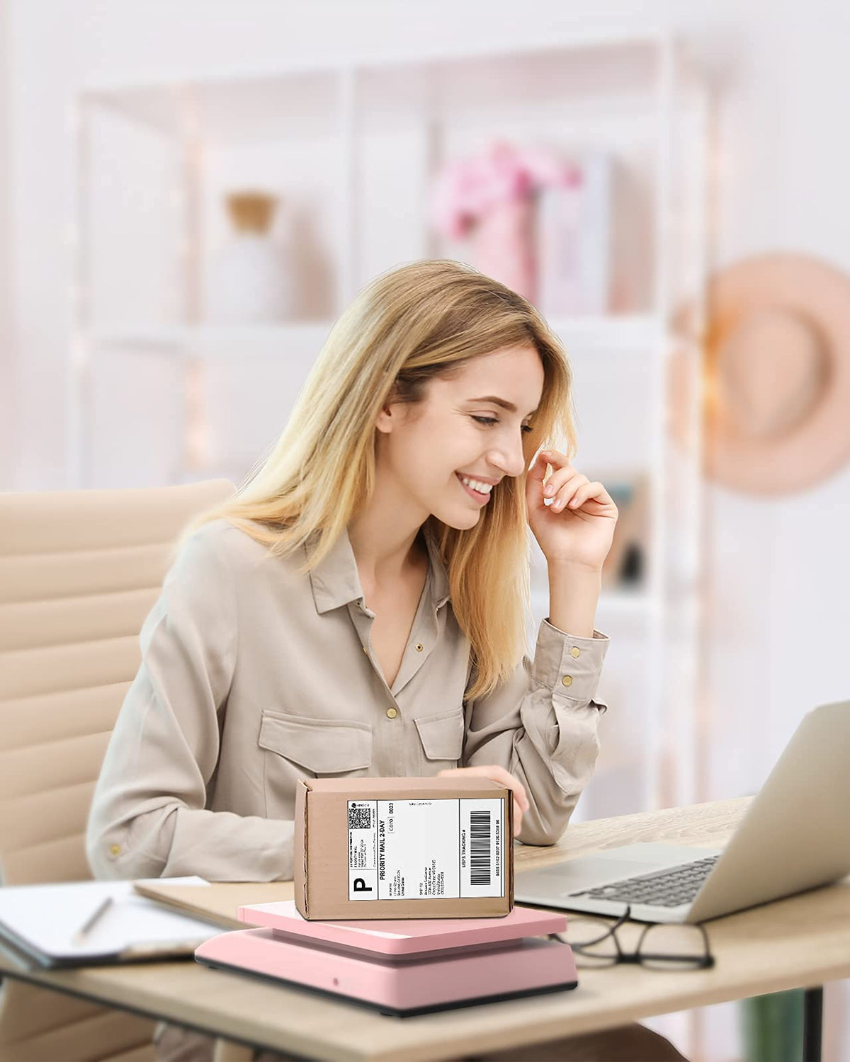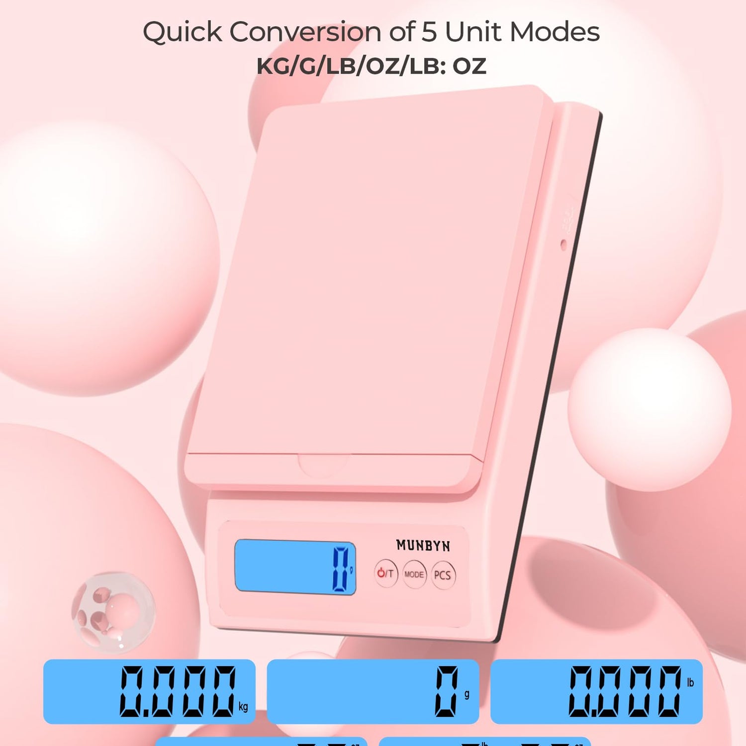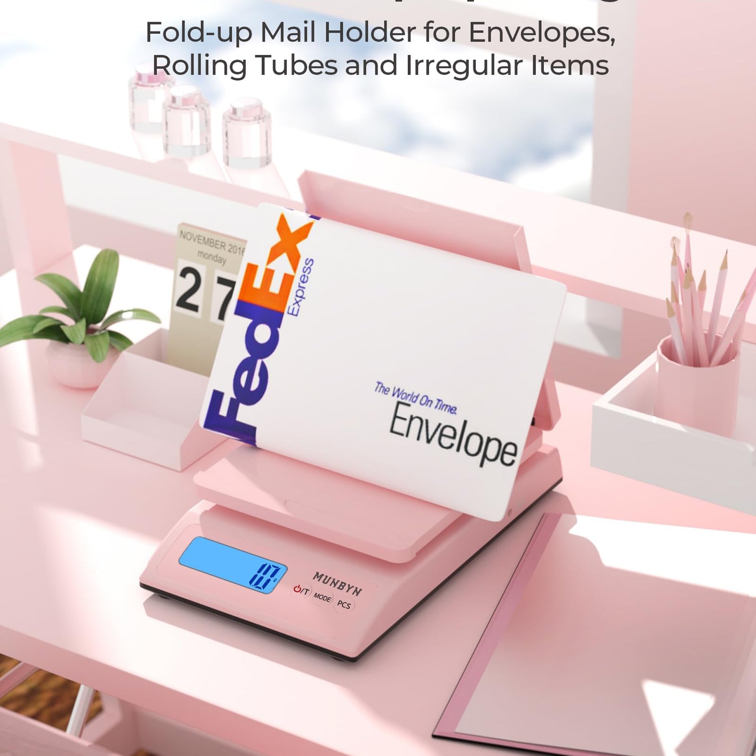 MUNBYN Shipping Scale, Accurate 66lb/0.1oz Postal Scale with Sweet Pink Style, Hold/Tear/PCS Function, Auto-Off, Battery & AC Adapter, Back-Lit LCD Display, Digital Scale for Packages and Food Pink