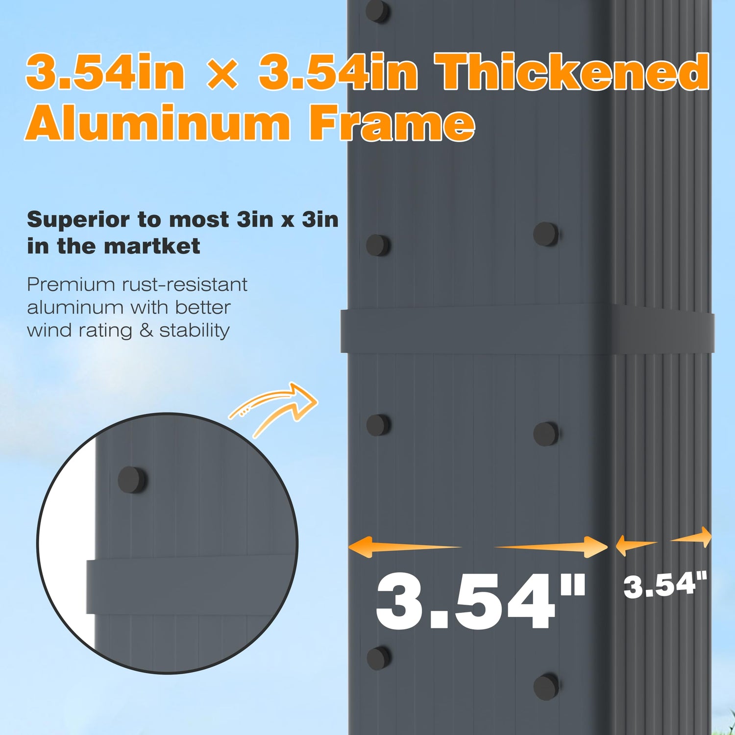 - Metal Frame: Our pergola features a strong and stable metal frame. The reinforced structure, including 3.55"x3.55" thicker posts, ensures durability and resistance against wind and sun exposure. Rest assured, your pergola will stand strong for years to come.