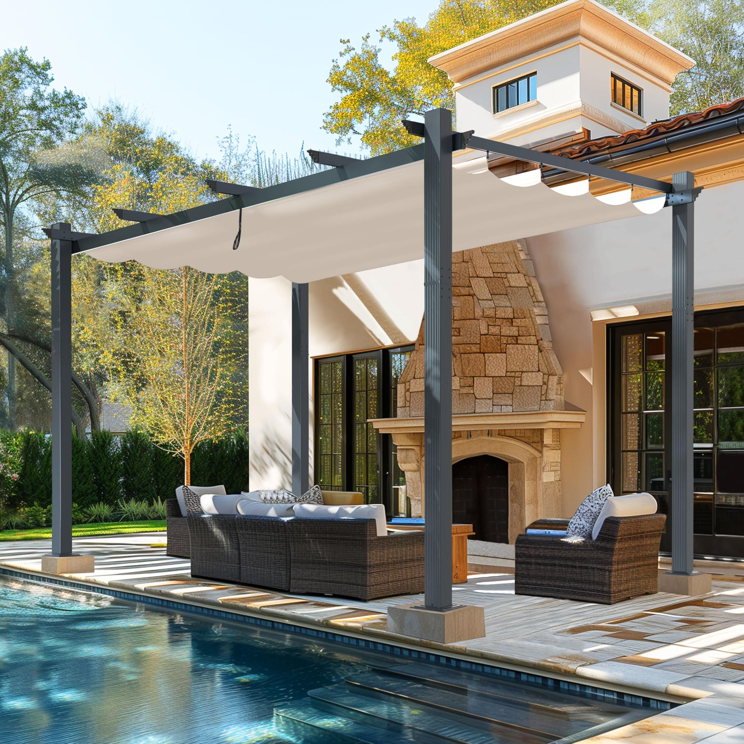MUPATER 10' X 13' Outdoor Pergola, Aluminum Pergola Patio with Weather-Resistant Canopy, Retractable Pergola for Backyard Deck Garden, Cream White