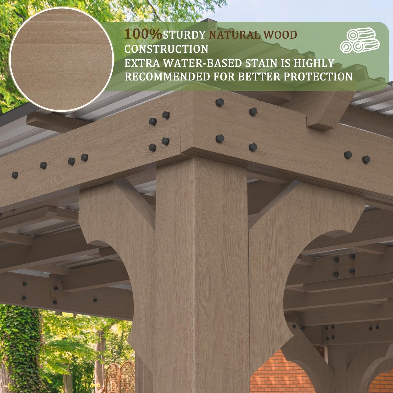 • Wooden Gazebo: This BBQ gazebo is made of wood, very sturdy, not easy to rust, and able to withstand harsh weather. In addition: Additional water-based stain is recommended for better protection.