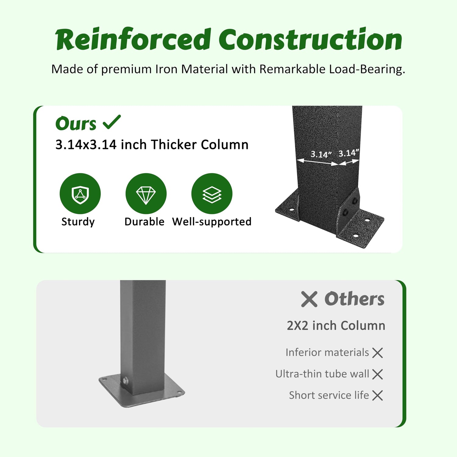 - High-quality -The heavy-duty metal frame is used to support the hardtop panels, bringing better stability, and the top is stabilized using a triangular structure, so it can easily withstand heavy snow and bad weather conditions without any worries, and no rust, as long as it is firmly fixed to the wall and the ground.