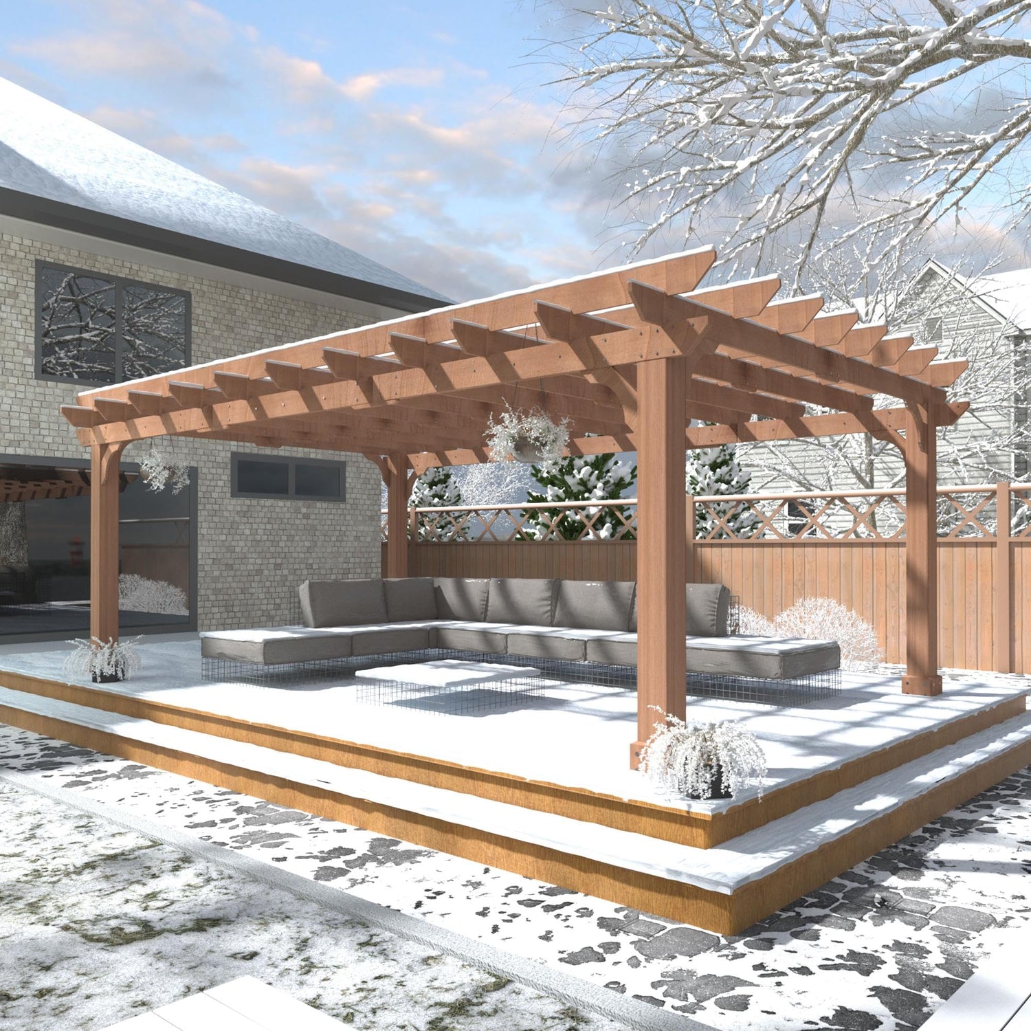 - Dimensions: External dimensions of outdoor wooden pavilion: 192.1" L x 137.8" W x 88.2" H. Wood pergola interior dimensions: 159.4" L x 107.5" W x 86.2" H. Maximum entrance height of patio pergola: 81.8 inches.