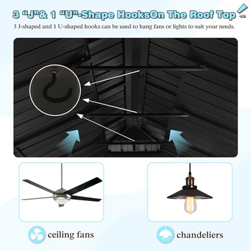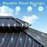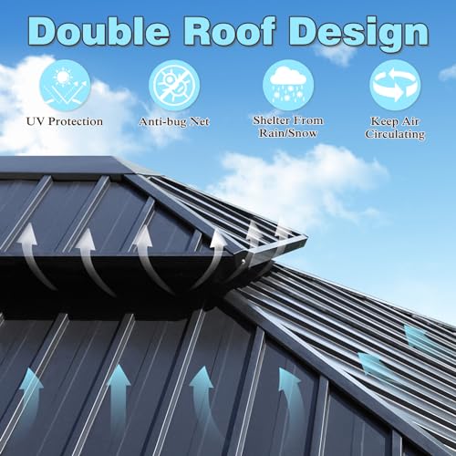 - 【UNIQUE, STYLISH AND EYE-CATCHING】You'd love this double roof hardtop gazebo with its stylish black-colored vertical stripe roof and dark grey sidewalls. The vertical stripe roof of aluminum gazebo is functionally design offer you the best experience of airflow, brightness and protection from bad weather. It is just the perfect piece adding to your patio, deck or backyard for your needs of private conversation or parties.