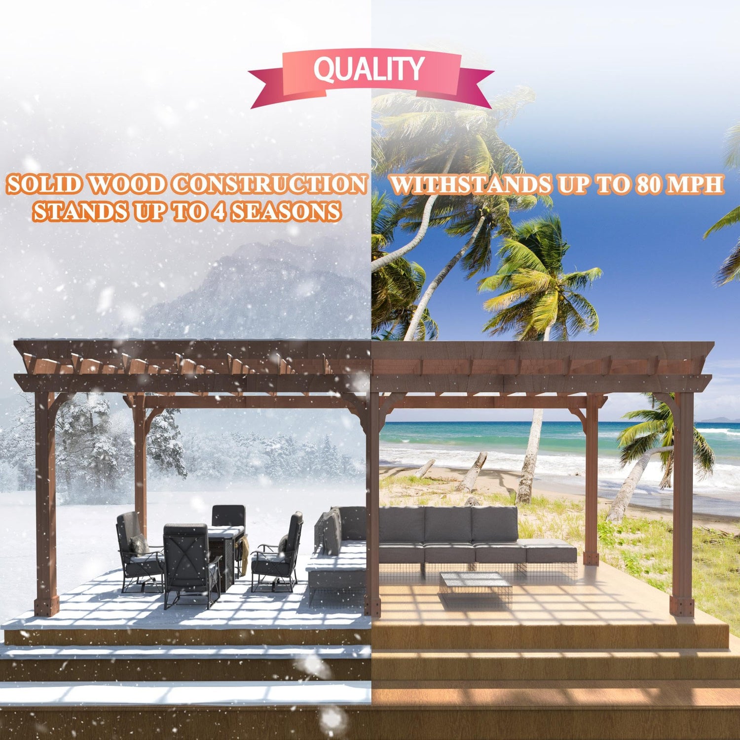 - Be Careful With Assembly: Assembling a large outdoor pergola is never easy because of the complexity of the steps, and we definitely recognize that! This pergola has a simplified and detailed description. We also have a video of the conference for you. You can hang a lightweight hammock, swing or ceiling fan from a 12×20 FT pergola as needed. You can also DIY additional oil or water based stains to increase the duration of this pergola.