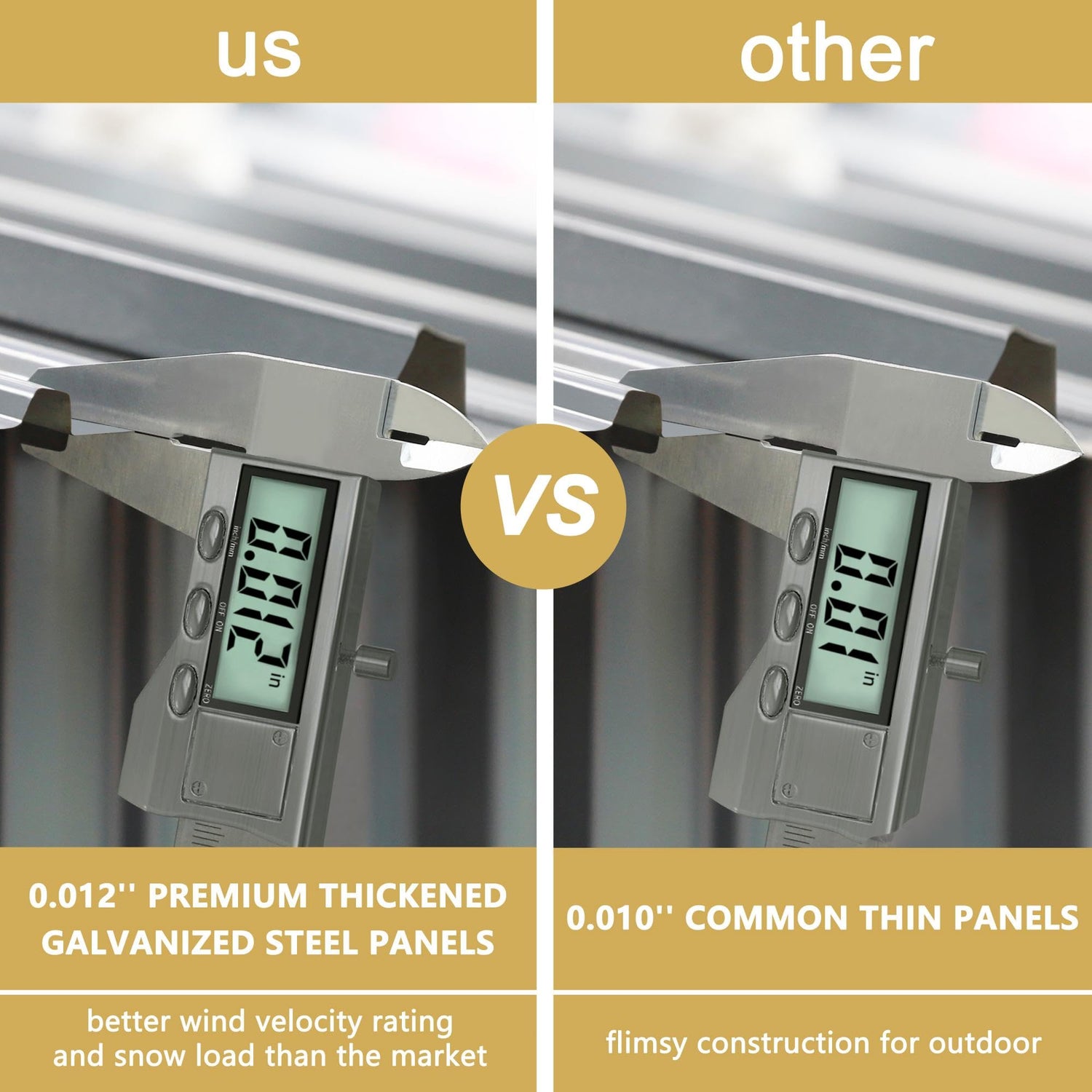 - 【STURDY & SAFE】Different from other outdoor storage sheds, we upgraded the panels to 0.012'' premium thickened galvanized steel for better wind-resistant than other sheds for outdoor. Additionally, the lean-to shed features a rust proof, reinforced sturdy galvanized steel lockable door to safely protect your personal belongings and no need to buy another lock.