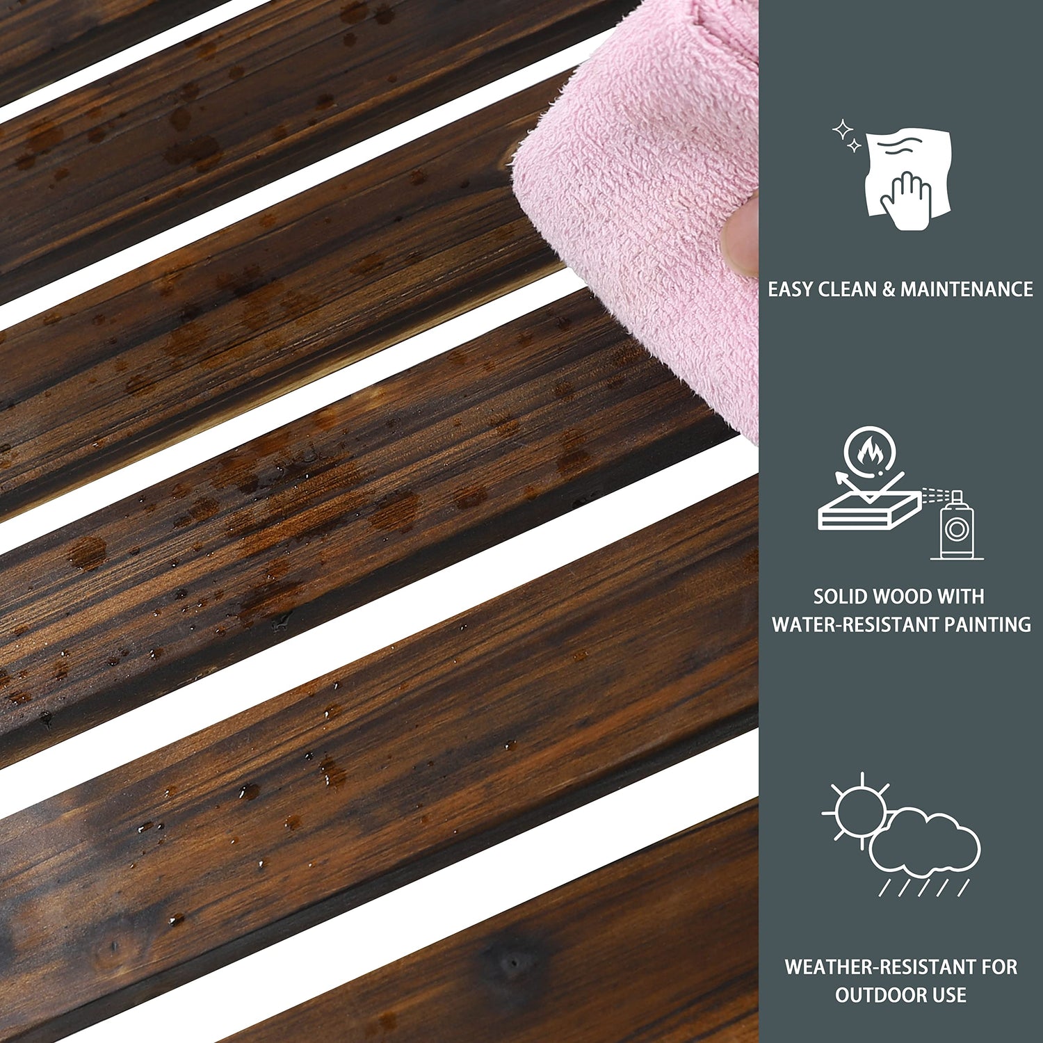 - 【HIGH-QUALITY SOLID FIR WOOD】No doubt this rustic porch swing would perfectly fit to any outdoor scenarios such as front porch, backyard, deck or garden for its high-quality solid fir wood construction which is not easy to crack and chip. Made of solid hardwood and coated in a waterproof protective layer of polyurethane paint, this slat-back swing is the perfect spot to kick back and relax with that special someone.