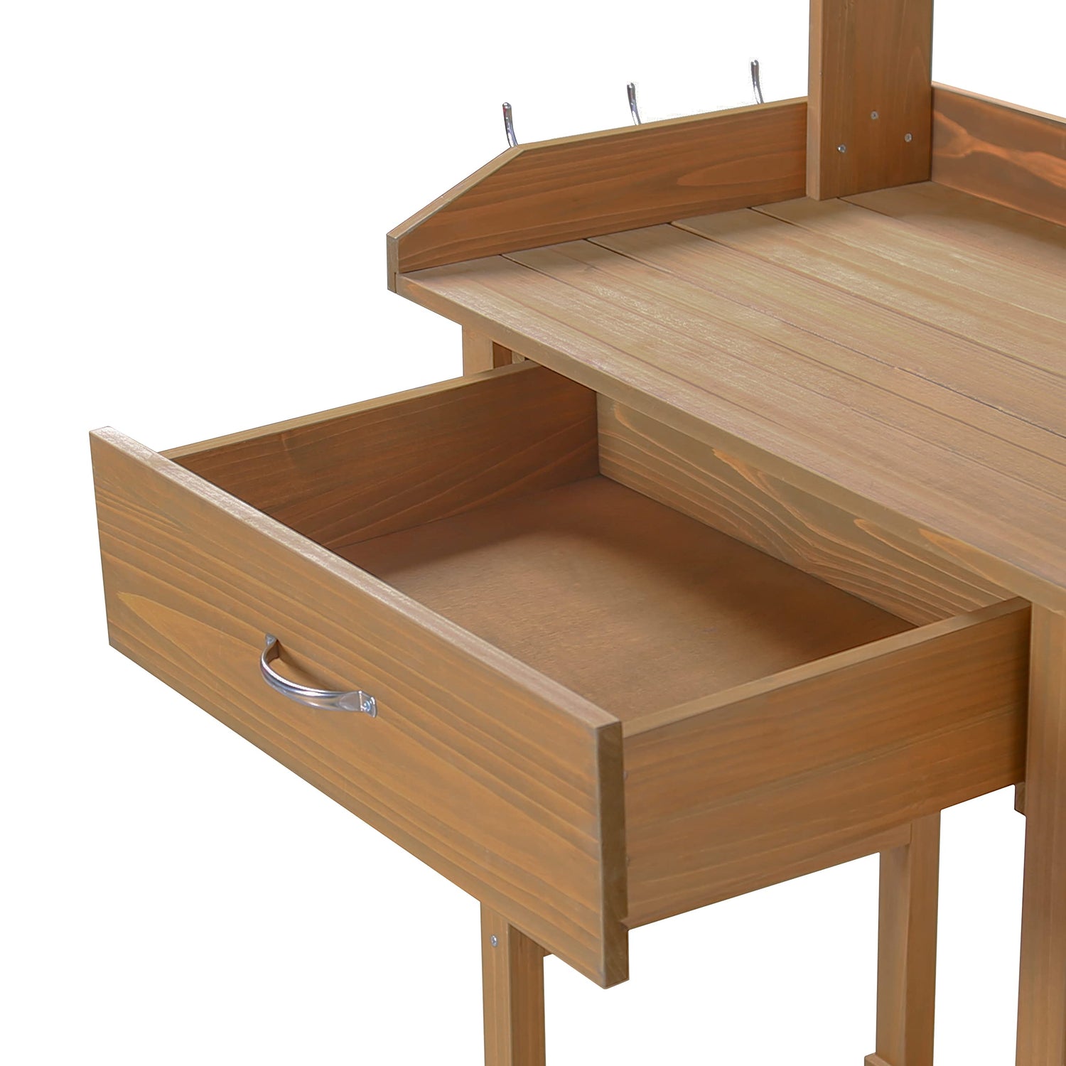- 【REINFORCED CONSTRUCTION AND HIGH-GRADE MATERIAL】Made of high-quality fir wood, this potting table is sturdy and natural resistance to rot. It is strong enough for long-time outdoor use in any weather condition. The construction is simple but pretty solid with no wobble.