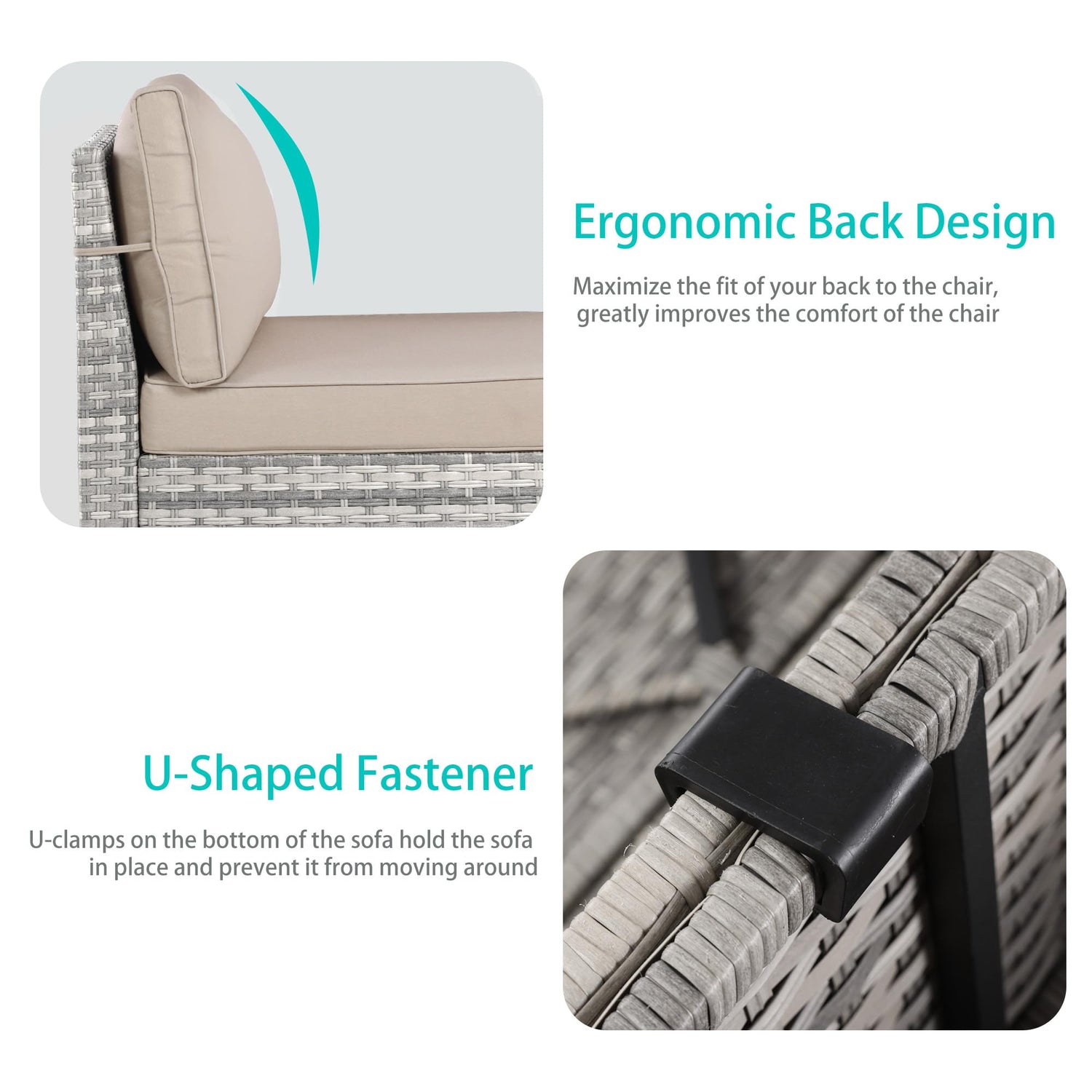 - Easy Assembly & Clean: This rattan set is designed for hassle-free setup and upkeep. The modular pieces assemble quickly, and the rattan material is easy to clean—just wipe with a damp cloth. The fire pit table is compatible with standard propane tanks (not included) for convenient use