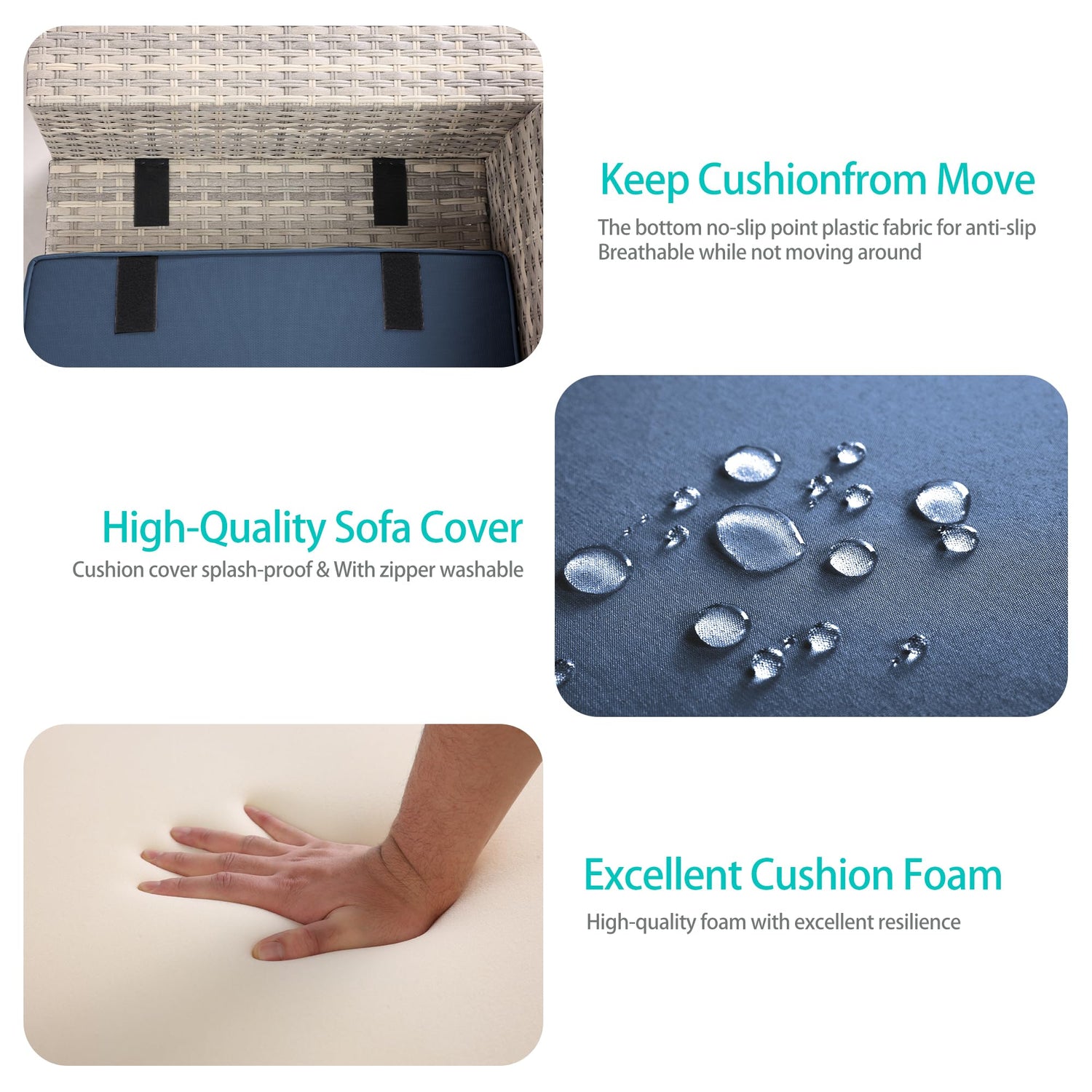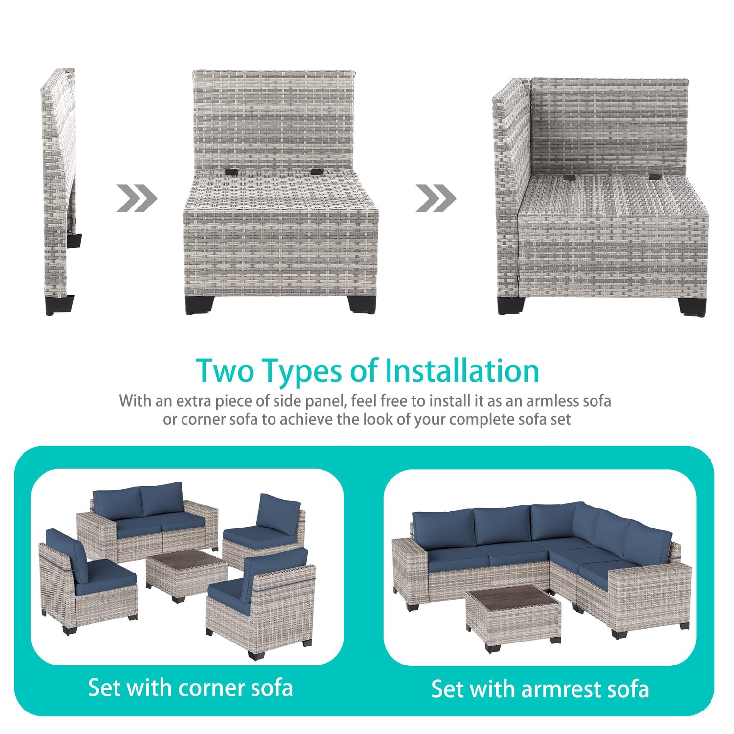 - Includes: The 13-piece set includes 2 armrest sofas, 2 single sofas, 1 corner sofa, 1 coffee table, 4 swivel chairs, 2 side table and 1 fire pit table, providing ample seating for entertaining or relaxing. The ergonomic design and thicken cushions offer superior comfort. Designed for year-round use, this rattan furniture set features UV-resistant and waterproof materials, ensuring it withstands sun, rain, and humidity
