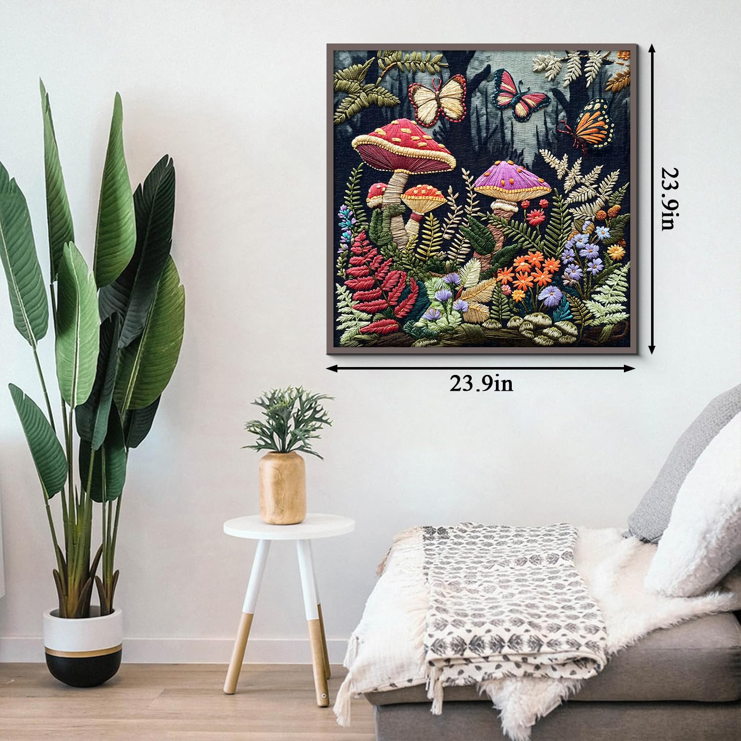 Details: Mushroom Garden Puzzles for Adults 1000 Pieces, Forest Mushroom Butterfly Jigsaw Puzzles, Flowers Nature Plant Embroidery Puzzle as Home Decor