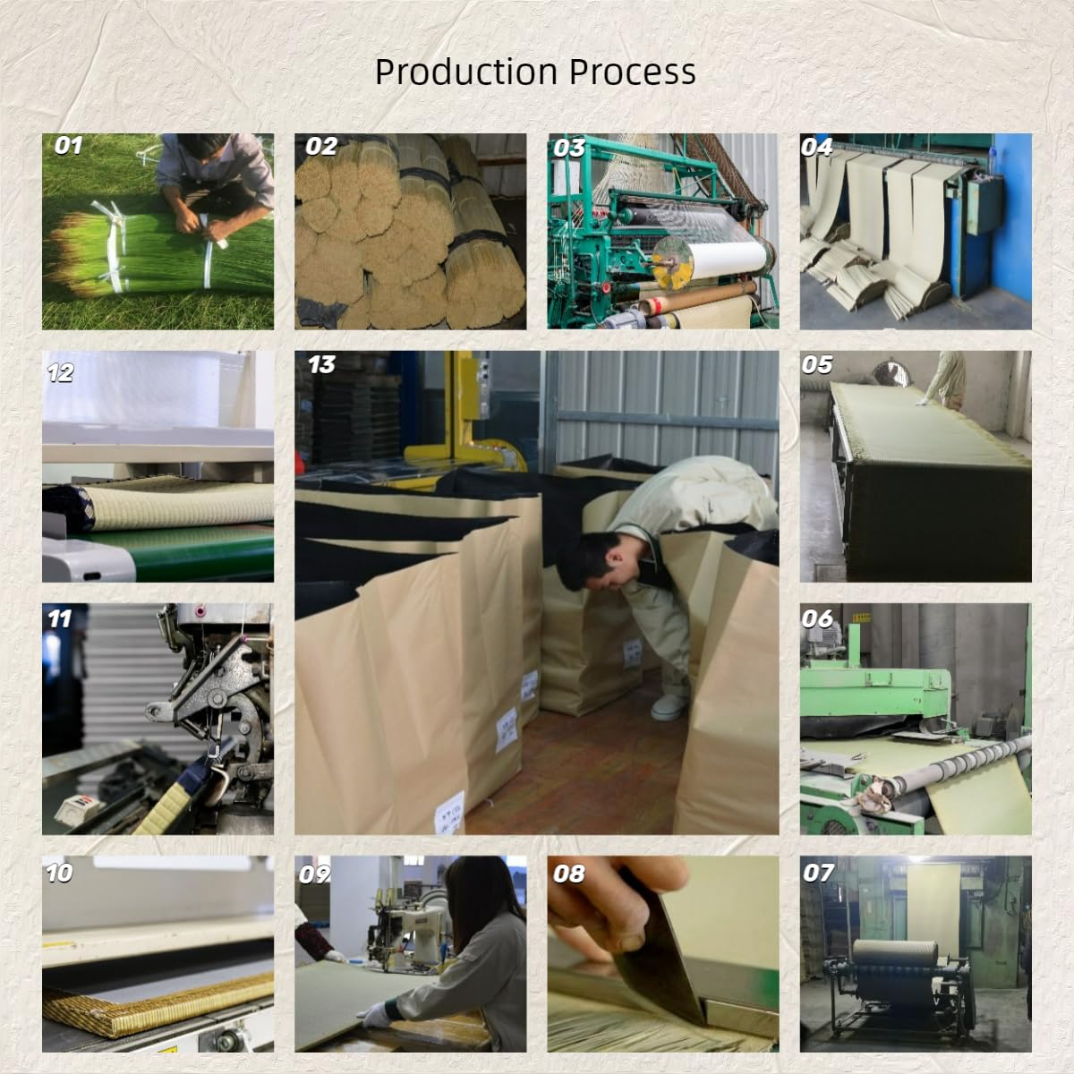 • The surface is rush grass. The backside is a non woven fabric
