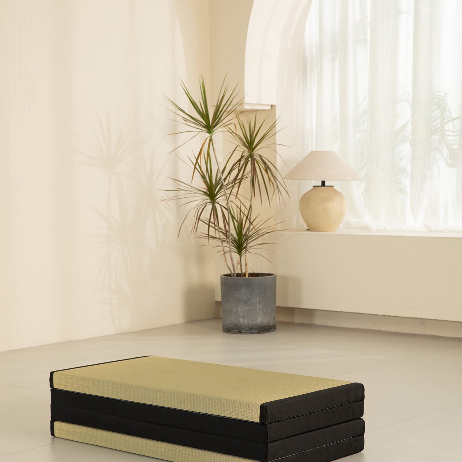 MustMat Thick Tatami Mat Twin XL Floor Mattress Japanese Tatami Bed with Storage Bag 39 x 80 x 2 in (Black)