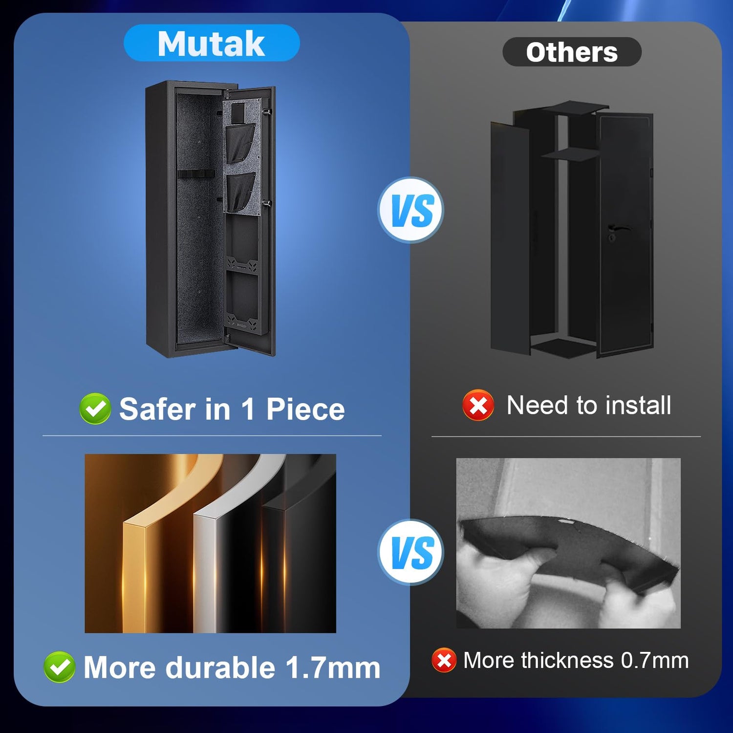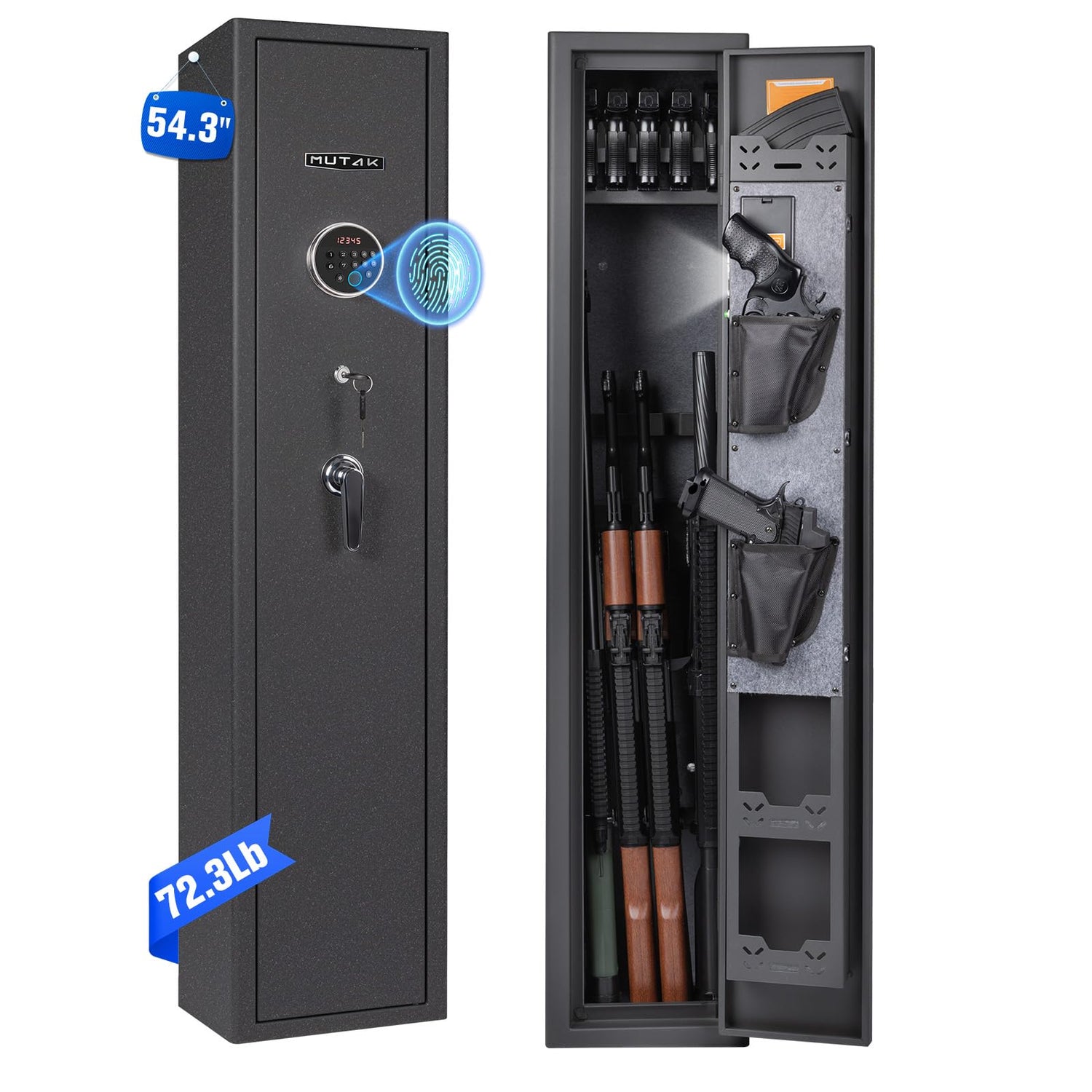 Mutak 4-5 Rifle Gun Safe for Home Rifle and Pistols, Biometric 5 Rifle Safe & 5 Pistols Racks, 4 Ways Quick Access with Fingerprint/PIN/Key/Type-C, Gun Cabinet with Alarm (No Assembly Required)